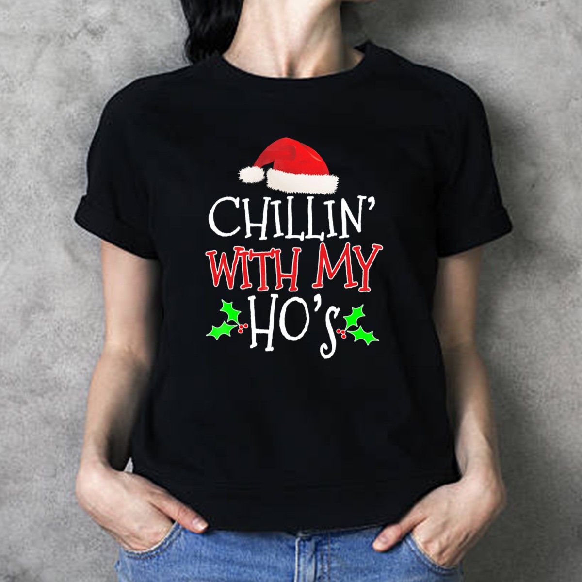 Celebrate the holiday season with a touch of humor in our “Chillin’ With My Ho’s Santa Hat Holly Christmas T-Shirt.” Perfect for festive gatherings, themed events, or simply lounging around during the holidays, this fun and cheeky shirt is designed for those who love to spread joy and laughter. Made for everyone, this fan-made design is printed in the USA, ensuring that you stand out in style while keeping it lighthearted and merry!