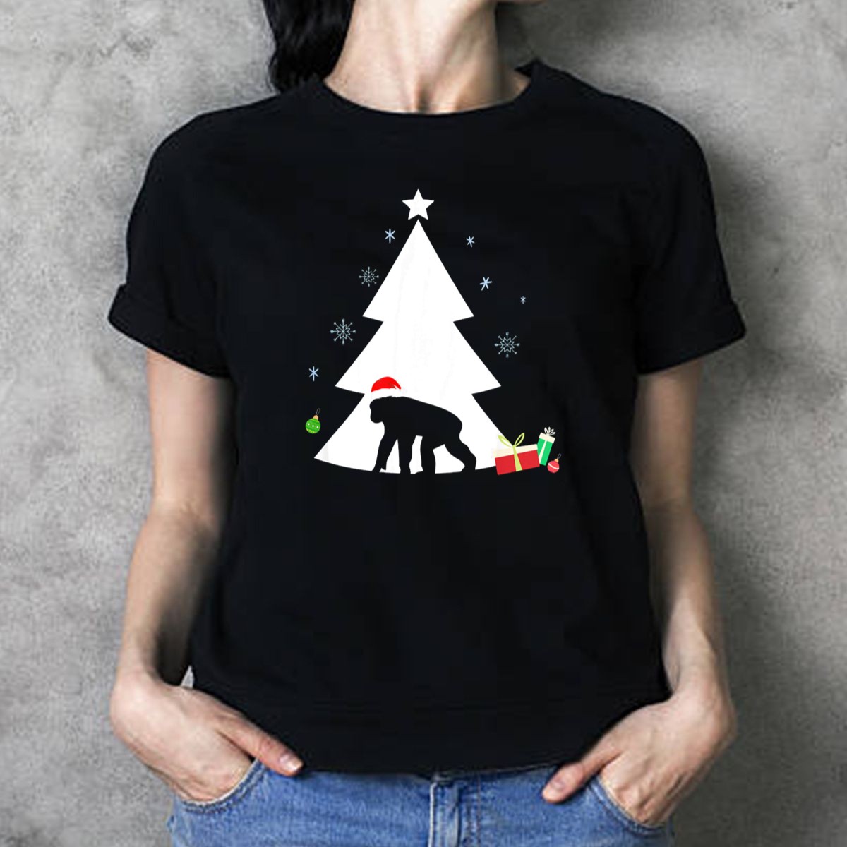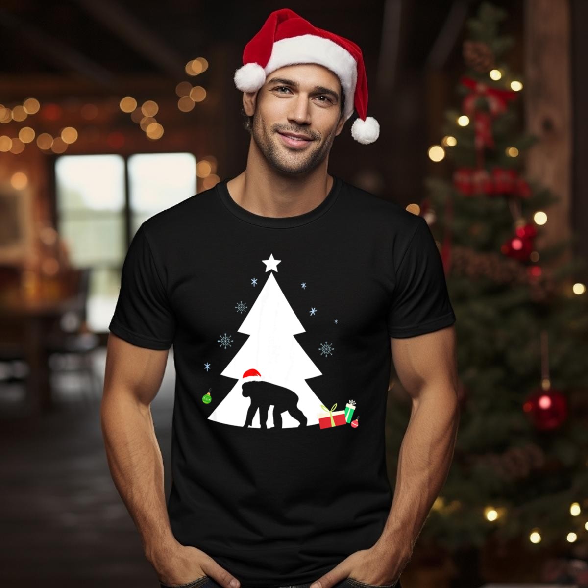 Celebrate the holiday spirit with our Chimpanzee In Santa Hat With Christmas Tree And Gifts T-Shirt! This fun and festive design is perfect for animal lovers and anyone looking to add a playful twist to their holiday wardrobe. Ideal for casual wear, themed events, or daily outings during the festive season, this shirt brings joy and laughter wherever you go. Made in the USA, it features a unique fan-made design that showcases your love for both chimps and Christmas!