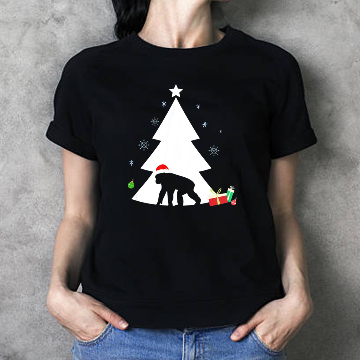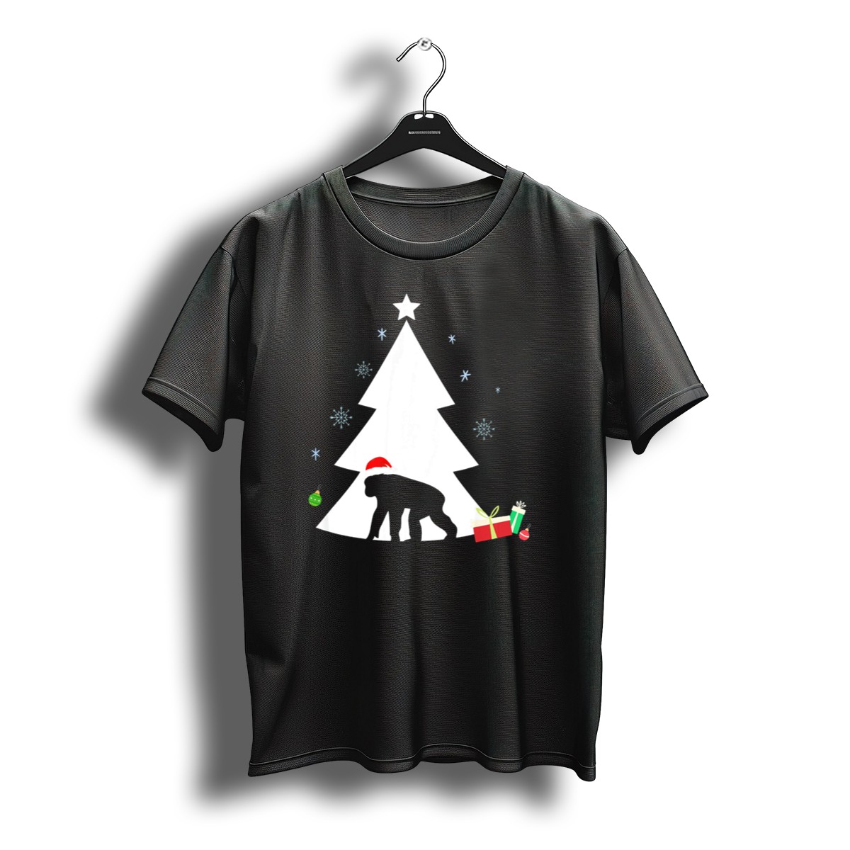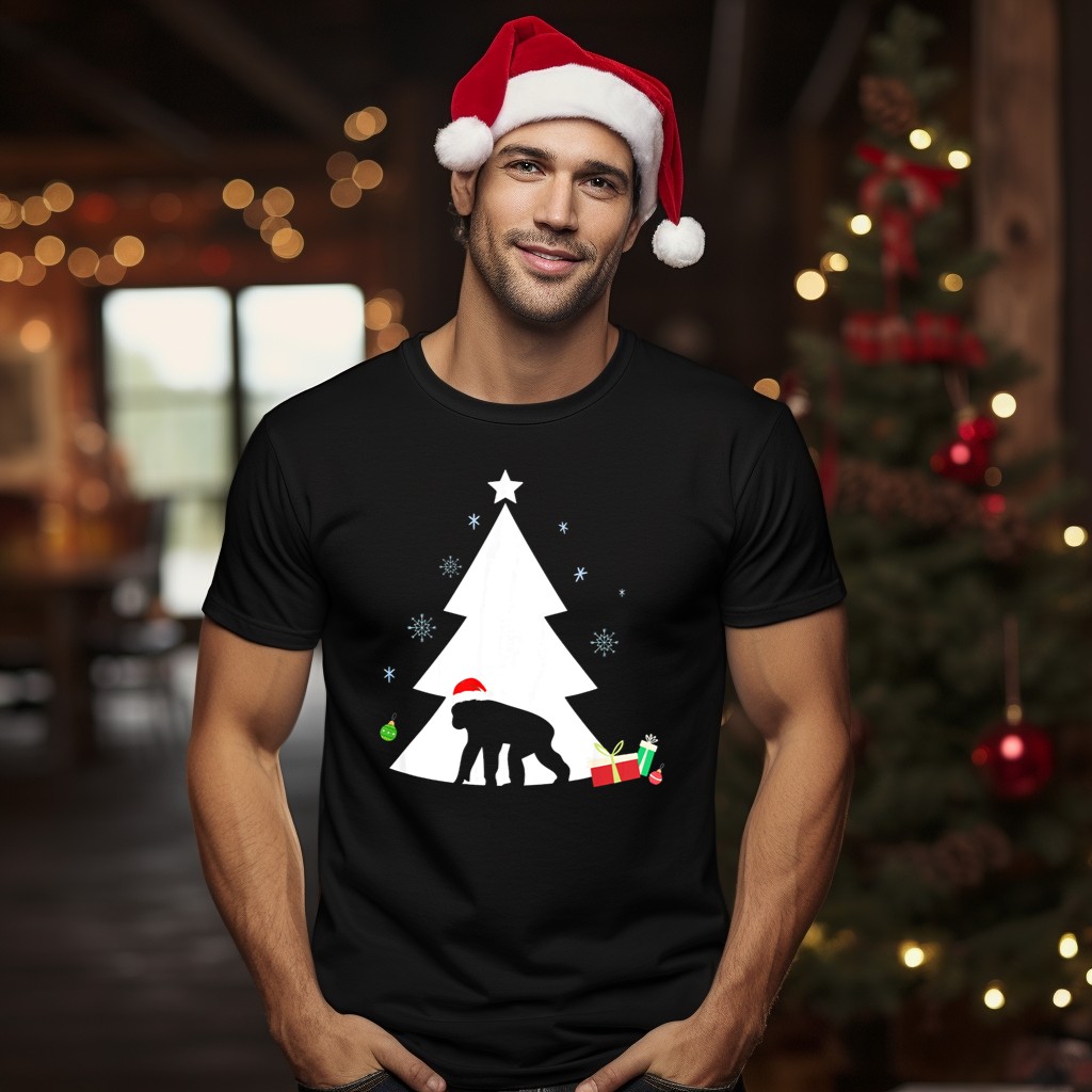 Be the first to review “Chimpanzee In Santa Hat With Christmas Tree And Gifts T-Shirt”