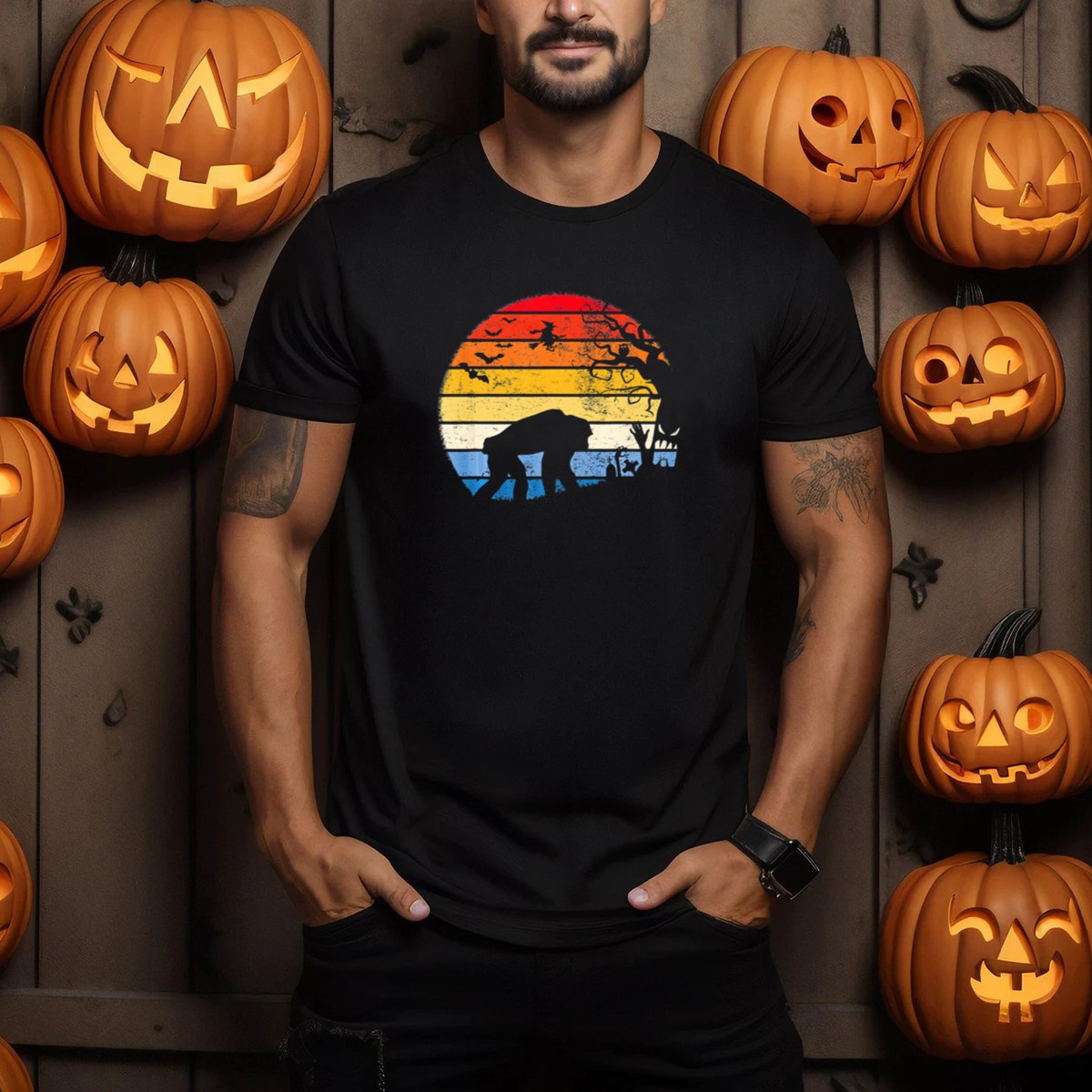 Embrace the spirit of Halloween with our Chimpanzee Silhouette With Witch Flying In Moonlit Halloween Scene T-Shirt, a perfect blend of fun and festivity for all animal lovers and Halloween enthusiasts alike. Whether you’re dressing up for a themed event or just looking to add a playful touch to your casual wardrobe, this shirt is designed to make a statement. With its unique fan-made design printed in the USA, it’s not just a T-shirt; it’s a celebration of creativity and whimsy that you can wear all season long.