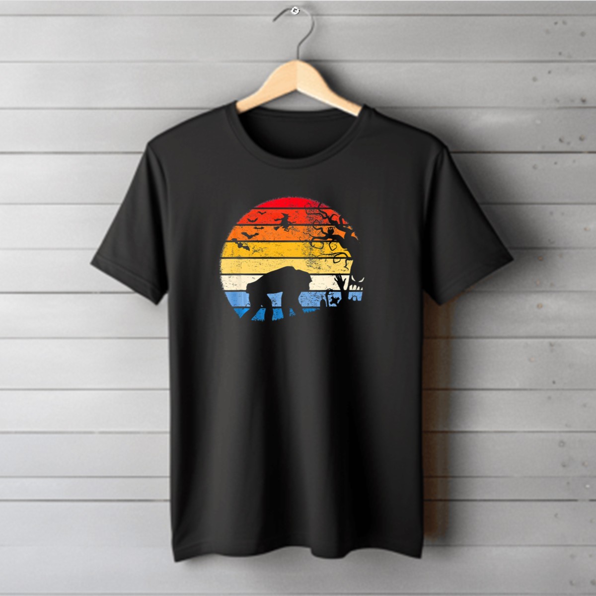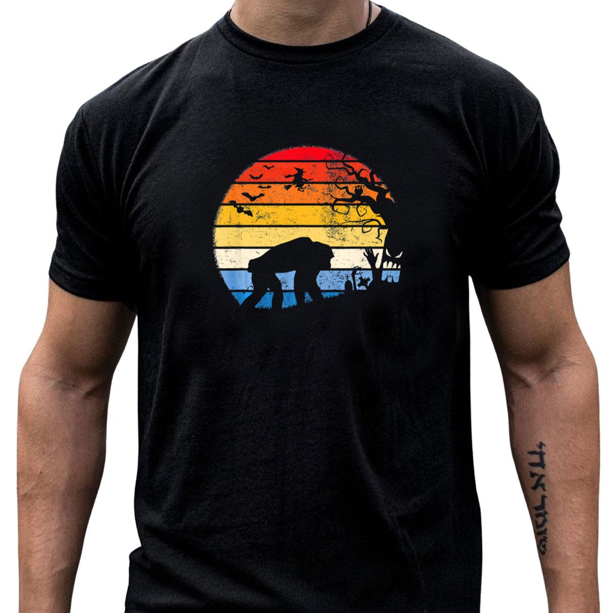 Be the first to review “Chimpanzee Silhouette With Witch Flying In Moonlit Halloween Scene T-Shirt”