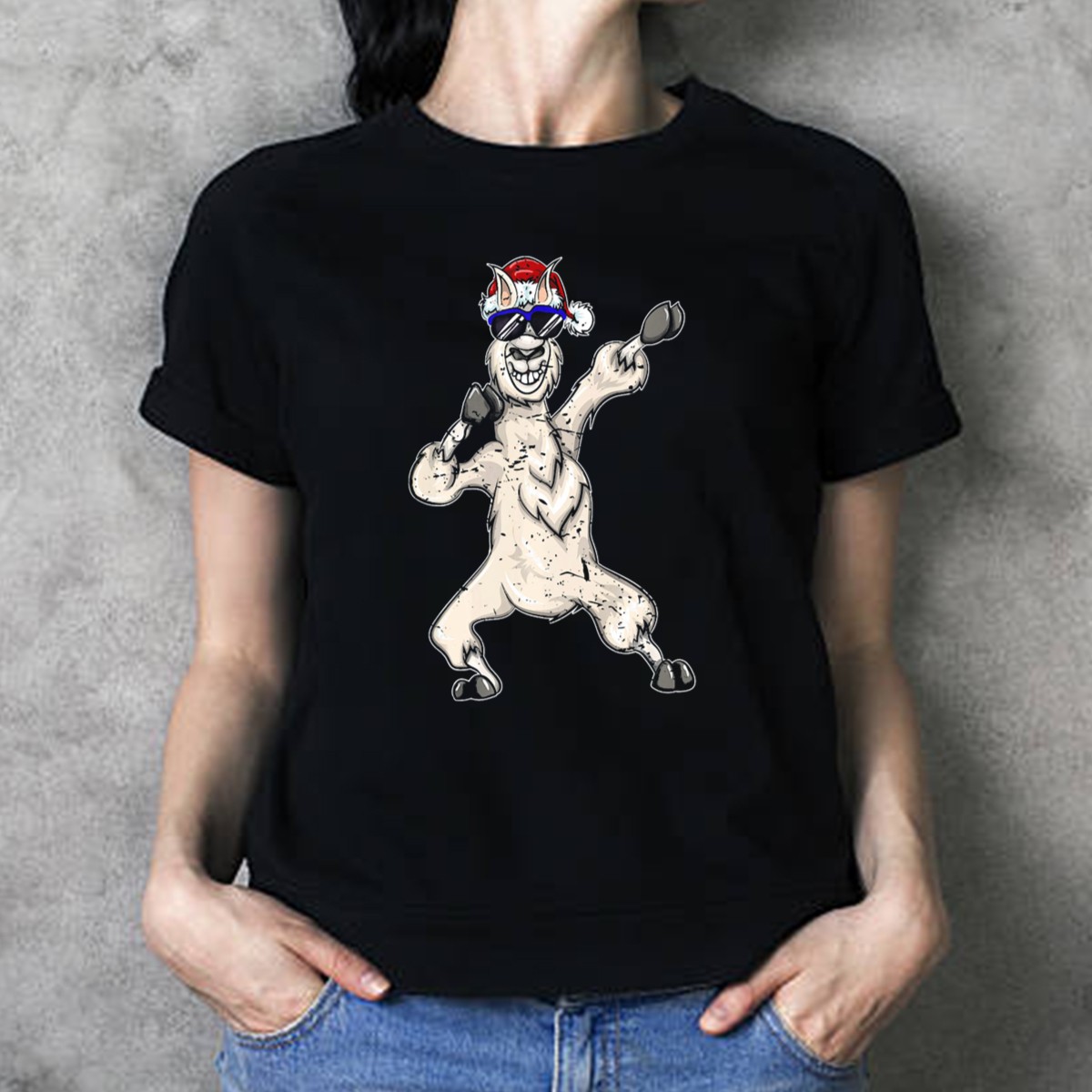 Christmas Alpaca Dabbin’ Santa Hat Sunglasses Dance T-Shirt