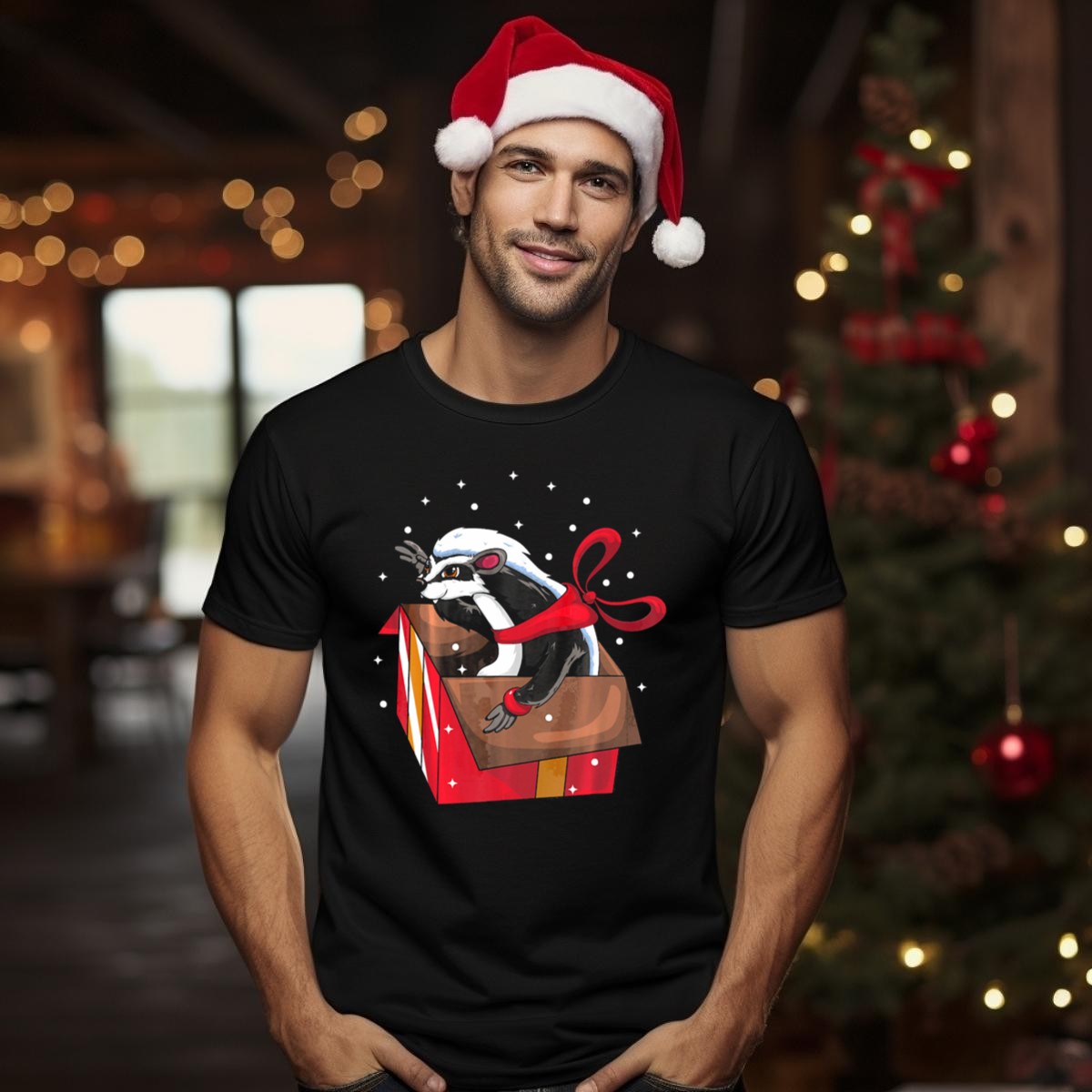 Celebrate the holiday season with our adorable Christmas Animal Cartoon Cute Hone Badger T-Shirt! Perfect for animal lovers and anyone looking to spread festive cheer, this charming design features a cute hone badger peeking out from a gift box, complete with a delightful red scarf. Ideal for casual wear, themed events, or just lounging around during the holidays, this shirt is a unique way to showcase your holiday spirit while staying comfortable and stylish.