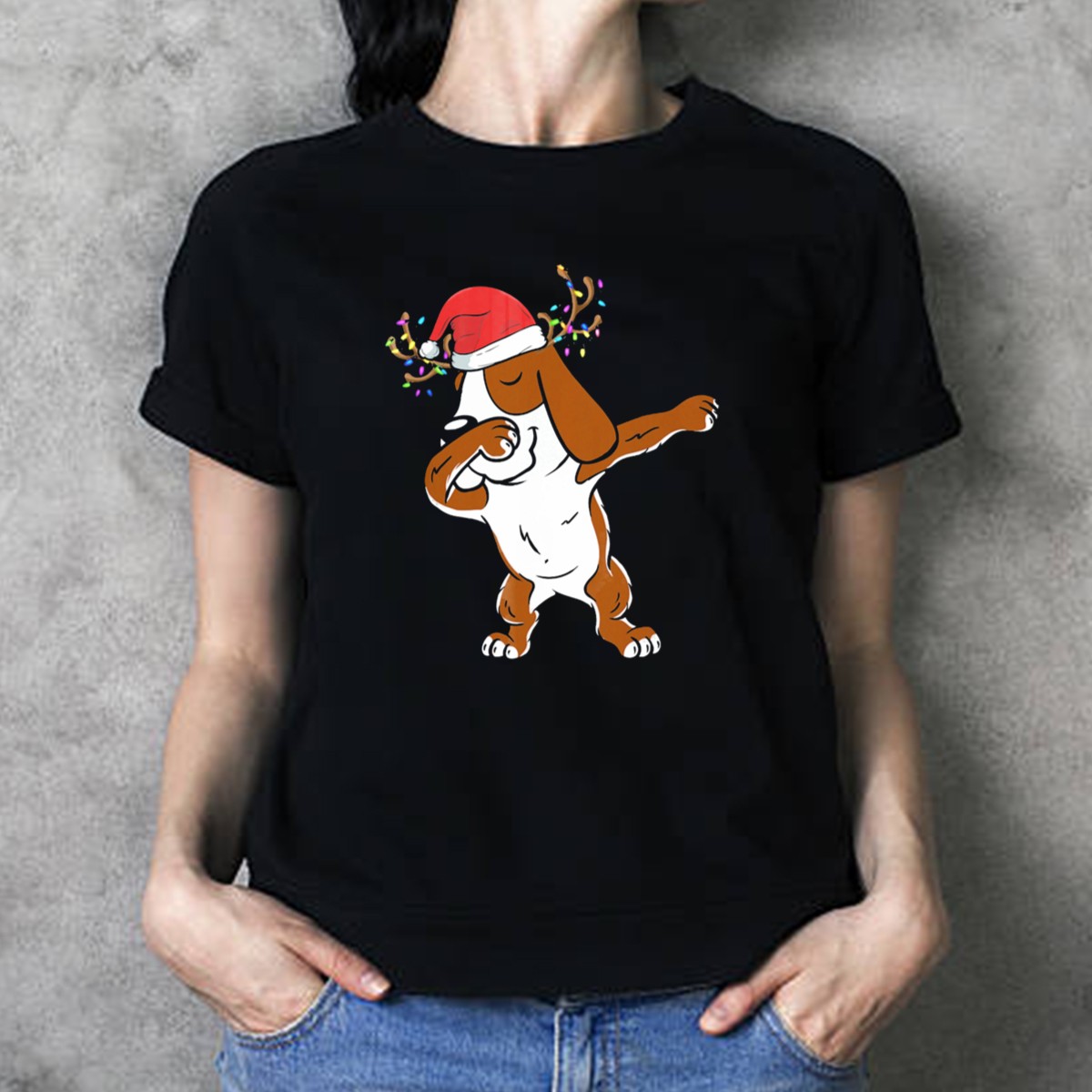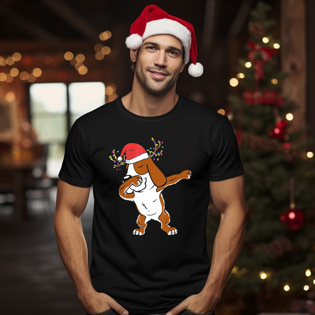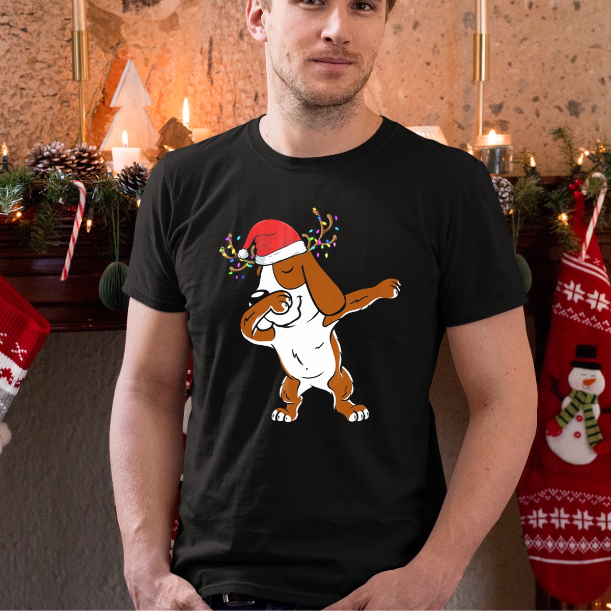 Celebrate the holiday season in style with our Christmas Basset Hound Reindeer Antlers Santa Hat Dab Dance T-Shirt! This fun and festive tee is perfect for dog lovers and anyone looking to add a touch of humor to their holiday wardrobe. Whether you’re attending a themed event, hosting a casual get-together, or simply spreading cheer during daily activities, this unique fan-made design brings joy and laughter wherever you go. Printed in the USA, it’s a must-have for all-season festivities!