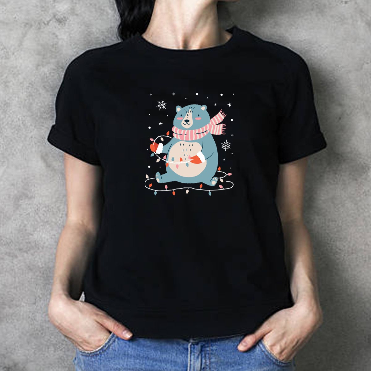 Get into the festive spirit with our Christmas Bear With String Lights And Snowflakes T-Shirt! Perfect for anyone who loves holiday cheer, this fan-made design showcases a charming bear adorned with twinkling lights and delicate snowflakes, making it an ideal choice for casual wear, themed events, or simply spreading joy during the holiday season. Printed in the USA, this T-shirt combines comfort and style, ensuring you celebrate in both ease and flair.