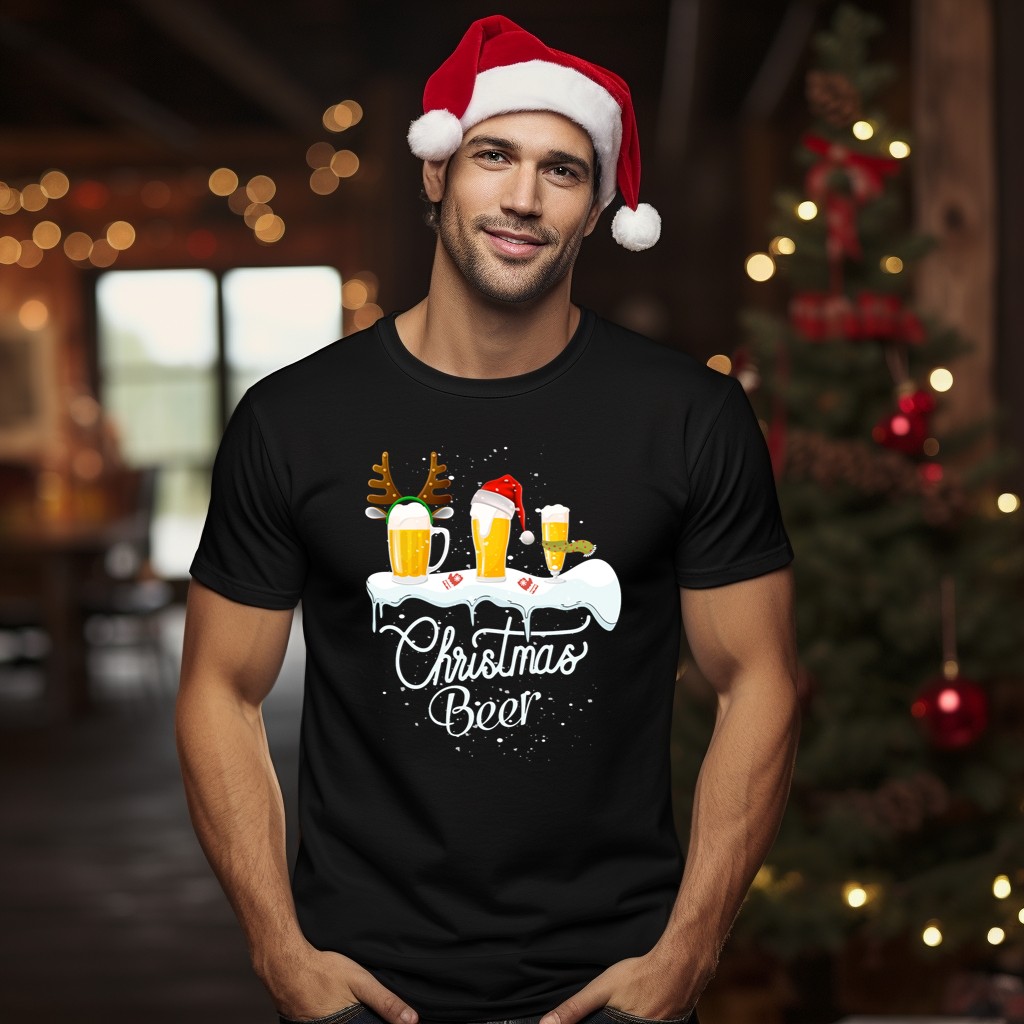 Celebrate the festive season in style with our Christmas Beer Reindeer Antlers Santa Hat Snowflakes T-Shirt! Perfect for holiday gatherings, themed events, or just spreading cheer during your daily wear, this fan-made design captures the jovial spirit of Christmas in a fun and unique way. Soft, durable, and breathable, this tee is sure to become a favorite for all your seasonal celebrations!