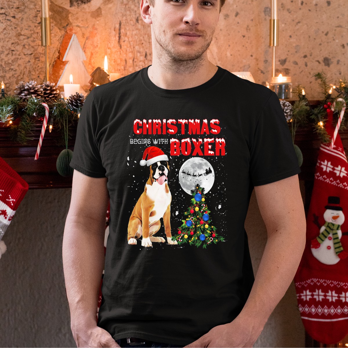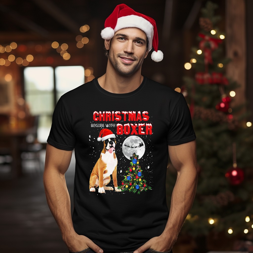 Be the first to review “Christmas Begins With Boxer Santa Hat Full Moon Holiday Tree T-Shirt”
