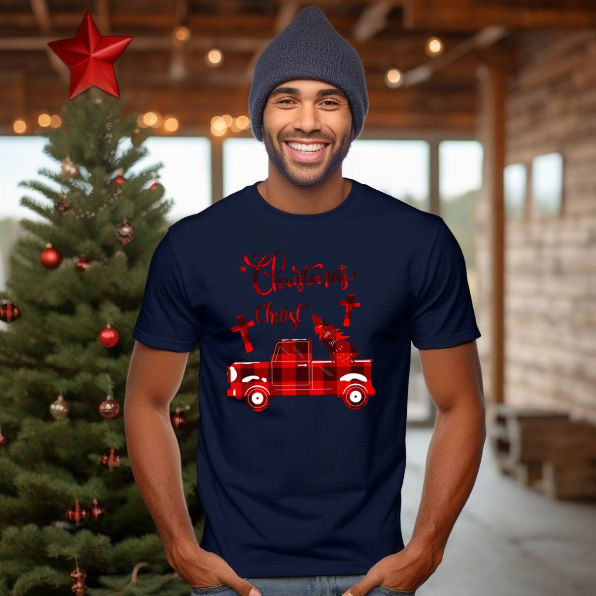 Celebrate the true spirit of Christmas with our “Christmas Begins With Christ” T-shirt, featuring a charming buffalo plaid red truck adorned with a tree and crosses. This delightful design is perfect for those who cherish the holiday season and want to share their faith in style. Ideal for casual wear, themed events, or daily outings, this shirt brings warmth and joy to your festive wardrobe, making it a unique addition to your collection. Proudly printed in the USA, this fan-made design is sure to resonate with fellow holiday enthusiasts.