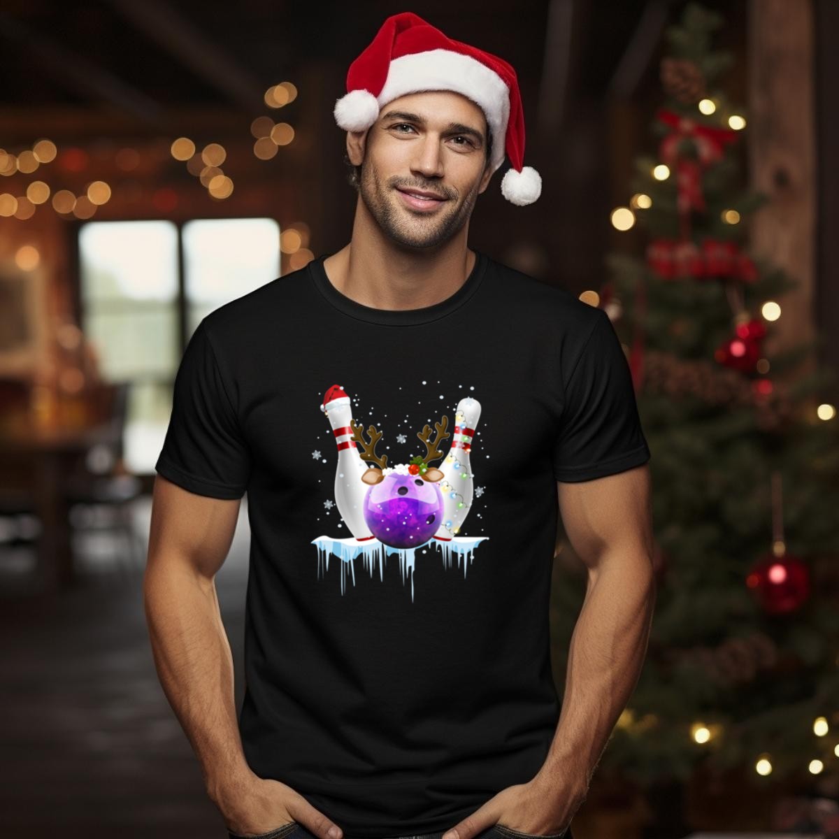 Celebrate the holiday season in style with our Christmas Bowling Ball Santa Hat T-Shirt, featuring a playful design of reindeer and snowflakes. Perfect for bowling enthusiasts and festive gatherings, this shirt adds a touch of whimsy to any casual outfit. Whether you’re hitting the lanes with friends or attending a themed event, this fan-made graphic tee brings cheer and comfort all season long.