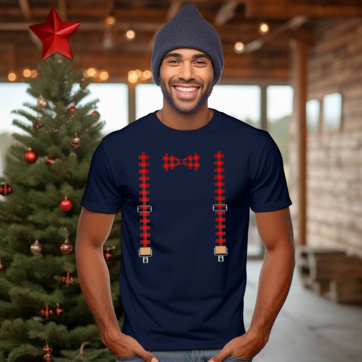 Celebrate the festive season in style with our Christmas Buffalo Plaid Bow Tie and Suspenders T-Shirt! Perfect for holiday gatherings, themed events, or just spreading cheer during your daily wear, this fan-made design features a charming and playful print that’s sure to bring smiles. Made in the USA, this shirt combines comfort with a whimsical touch, making it a must-have for anyone looking to showcase their holiday spirit.