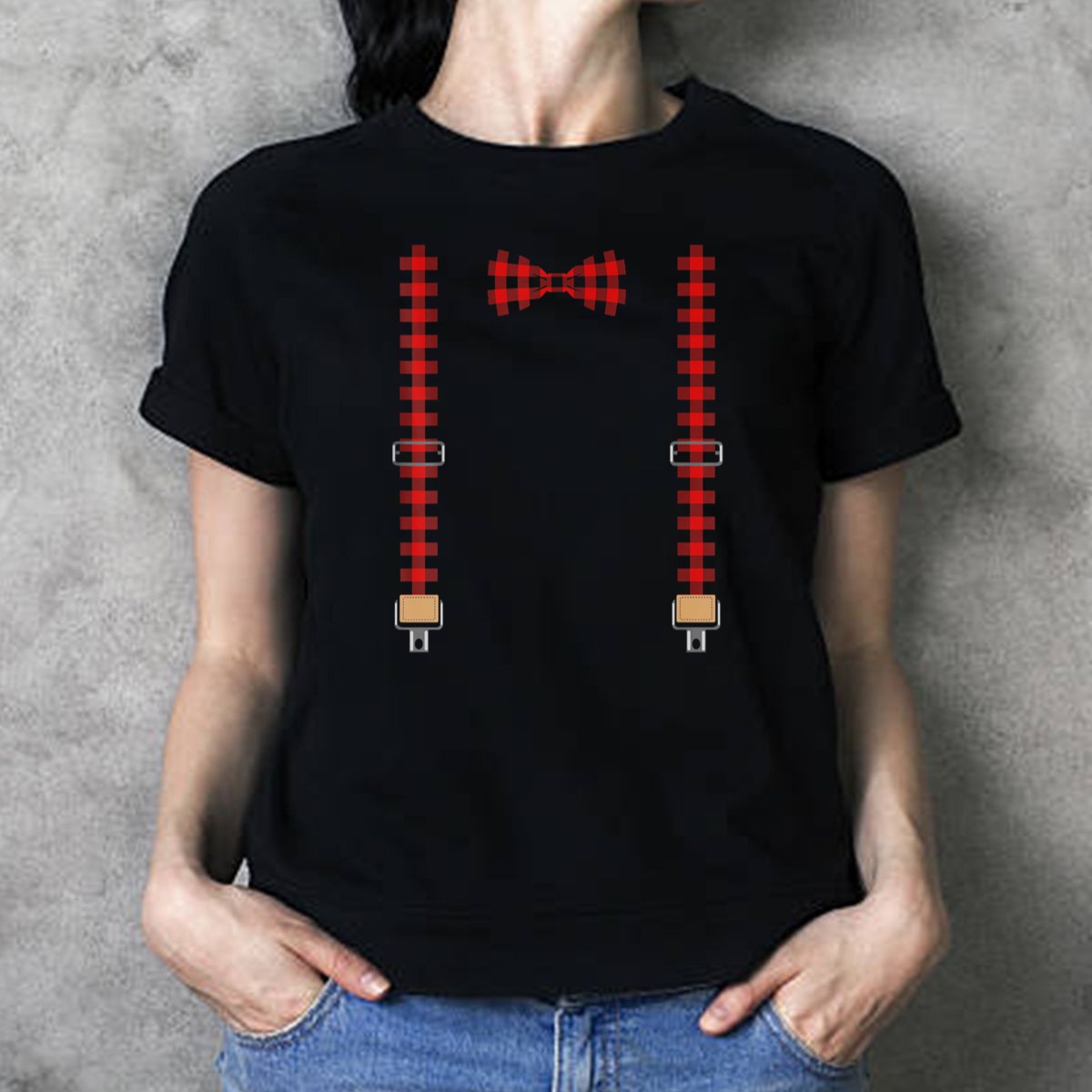 Be the first to review “Christmas Buffalo Plaid Bow Tie And Suspenders T-Shirt”