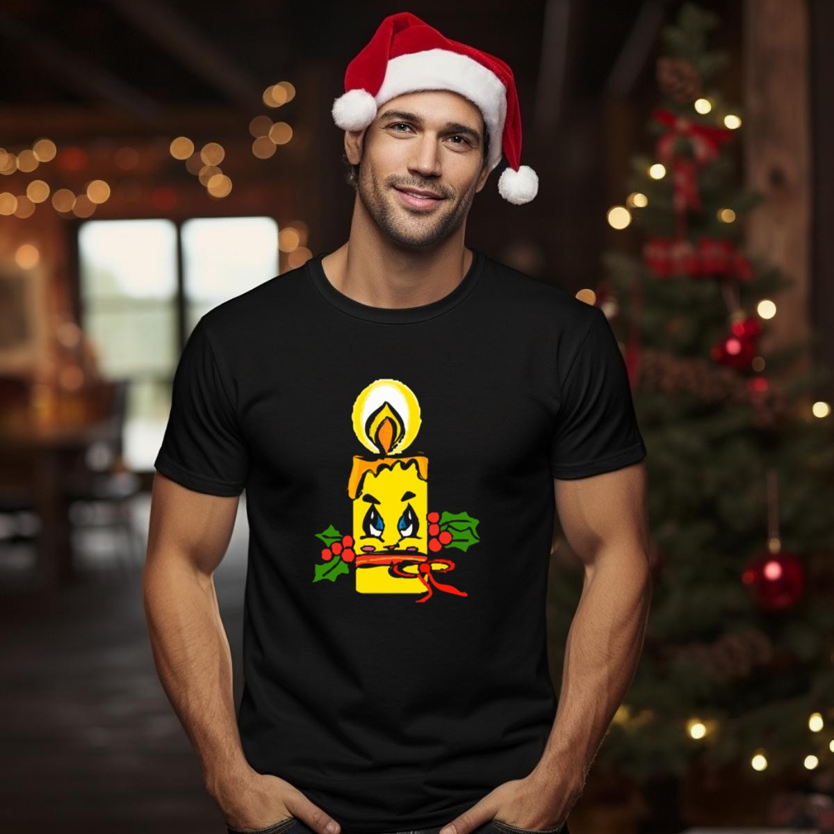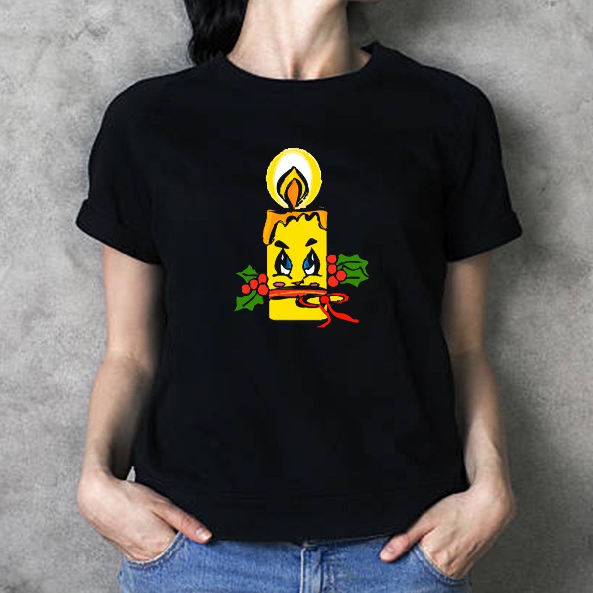 Embrace the holiday spirit with our Christmas Candle T-Shirt, featuring a charming design of a festive candle adorned with holly and a playful face. Perfect for anyone looking to spread joy during the holiday season, this shirt is ideal for casual gatherings, themed events, or simply to brighten up your daily wear. Made with love in the USA, this fan-made graphic tee combines comfort and style, making it a unique addition to your seasonal wardrobe.
