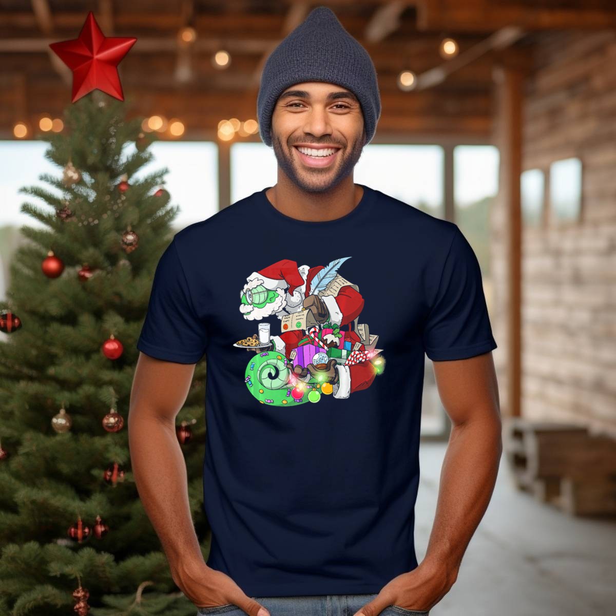 Celebrate the festive season in style with our Christmas Chameleon Santa T-Shirt! Perfect for both kids and adults, this fun and whimsical design showcases Santa in a playful chameleon twist, surrounded by cookies and gifts. Ideal for casual wear, themed events, or just spreading holiday cheer during daily outings, this shirt makes a unique statement that brings joy to your wardrobe. Made for comfort and durability, it’s a must-have for anyone looking to add a fun flair to their holiday attire!