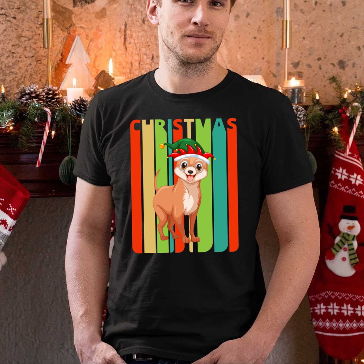 Celebrate the holiday season in style with our Christmas Chihuahua Festive Hat Retro Stripes T-Shirt! Perfect for dog lovers and anyone who appreciates a touch of festive cheer, this shirt is ideal for casual outings, themed events, or simply lounging around during the holidays. Featuring a unique fan-made design printed in the USA, it’s a must-have addition to your winter wardrobe that showcases your love for chihuahuas and holiday spirit!