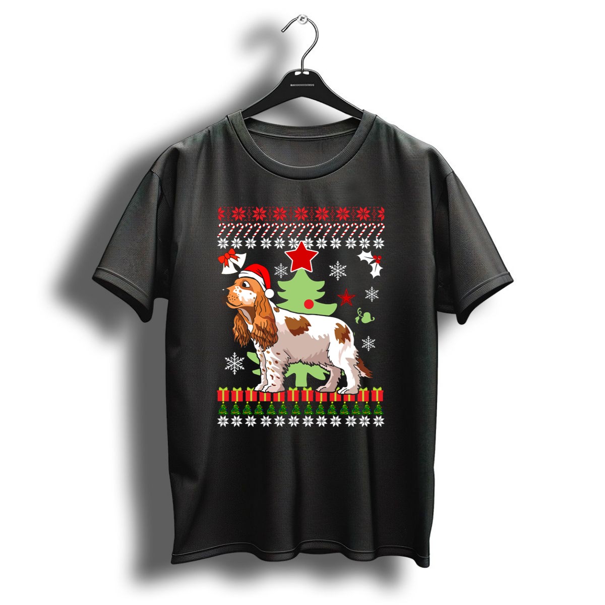 Christmas Cocker Spaniel Santa Hat Snowflakes Christmas Tree T Shirt