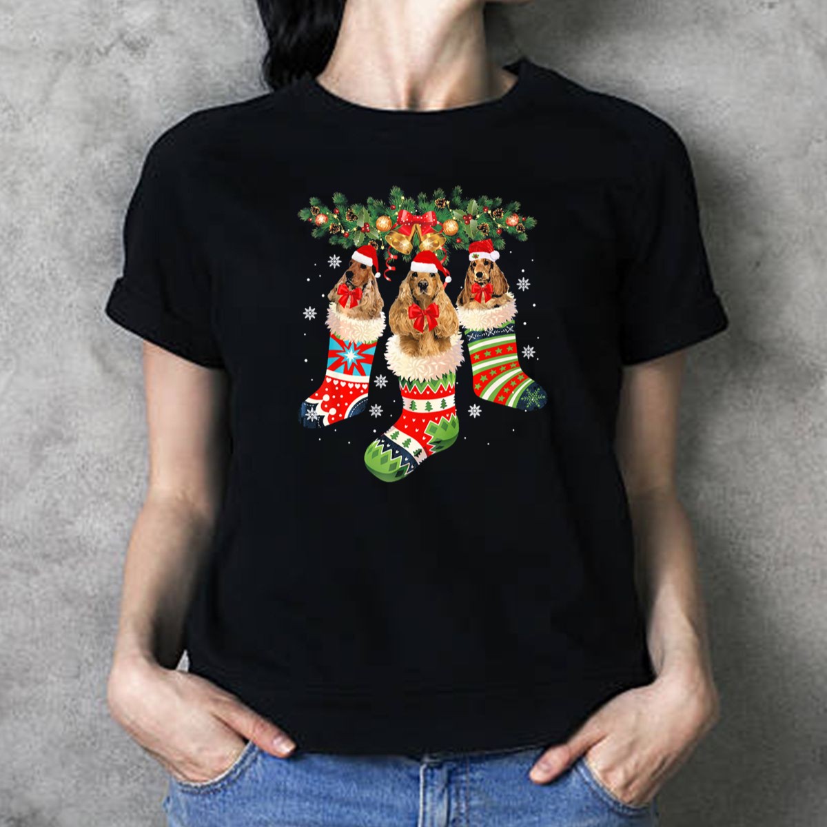 Celebrate the joy of the holiday season with our Christmas Cocker Spaniels T-shirt, featuring adorable pups nestled in festive holiday stockings, complete with Santa hats and bows. This delightful shirt is perfect for dog lovers and families alike, making it an ideal choice for casual wear, themed events, or just spreading holiday cheer throughout the day. Its unique fan-made design, printed right here in the USA, ensures you stand out in style while embracing the festive spirit!