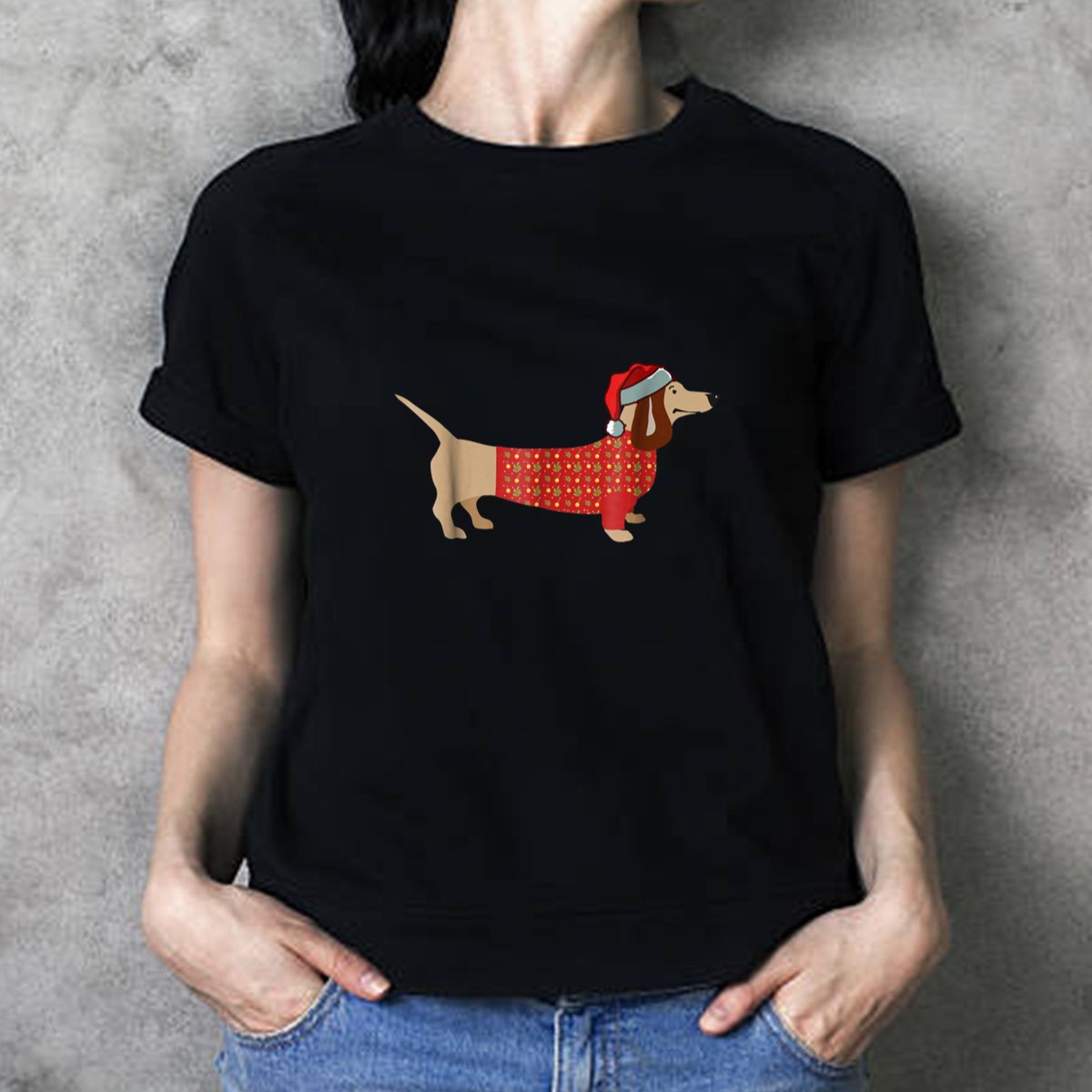 Christmas Dachshund In Santa Hat And Festive T Shirt