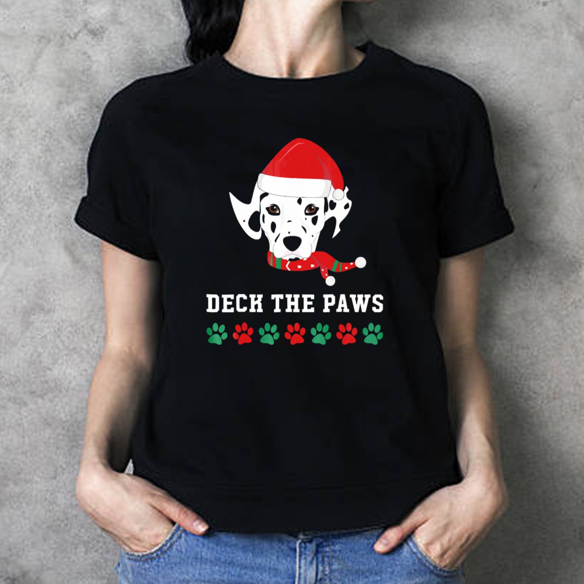 Celebrate the holiday season in style with our Christmas Dalmatian Deck The Paws T-Shirt! Perfect for dog lovers and festive spirits alike, this shirt features an adorable design of a Dalmatian wearing a Santa hat and scarf, complemented by playful paw prints. Ideal for casual wear, themed events, and daily outings, this fan-made graphic tee brings joy and cheer to every occasion, making it a must-have for your all-season wardrobe.