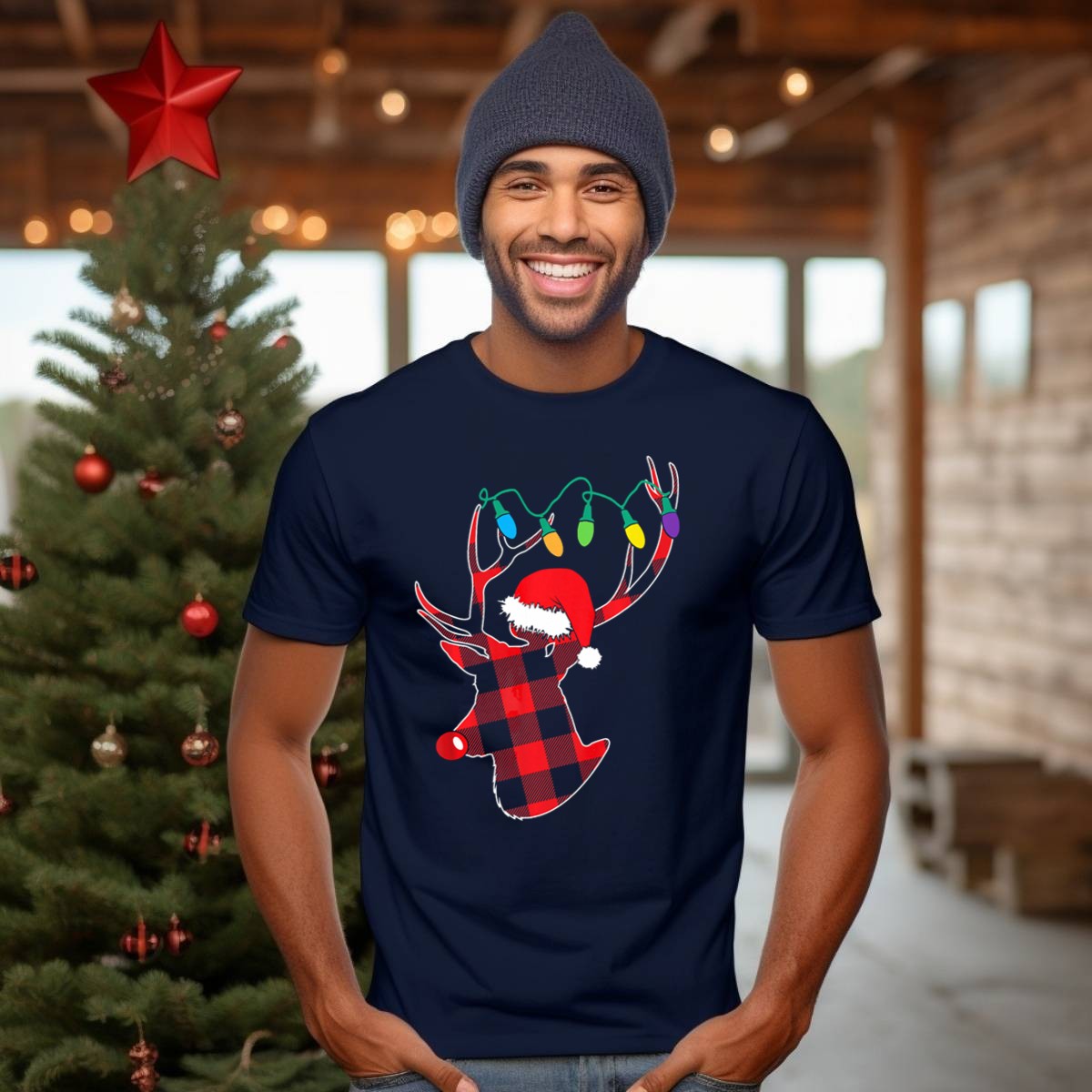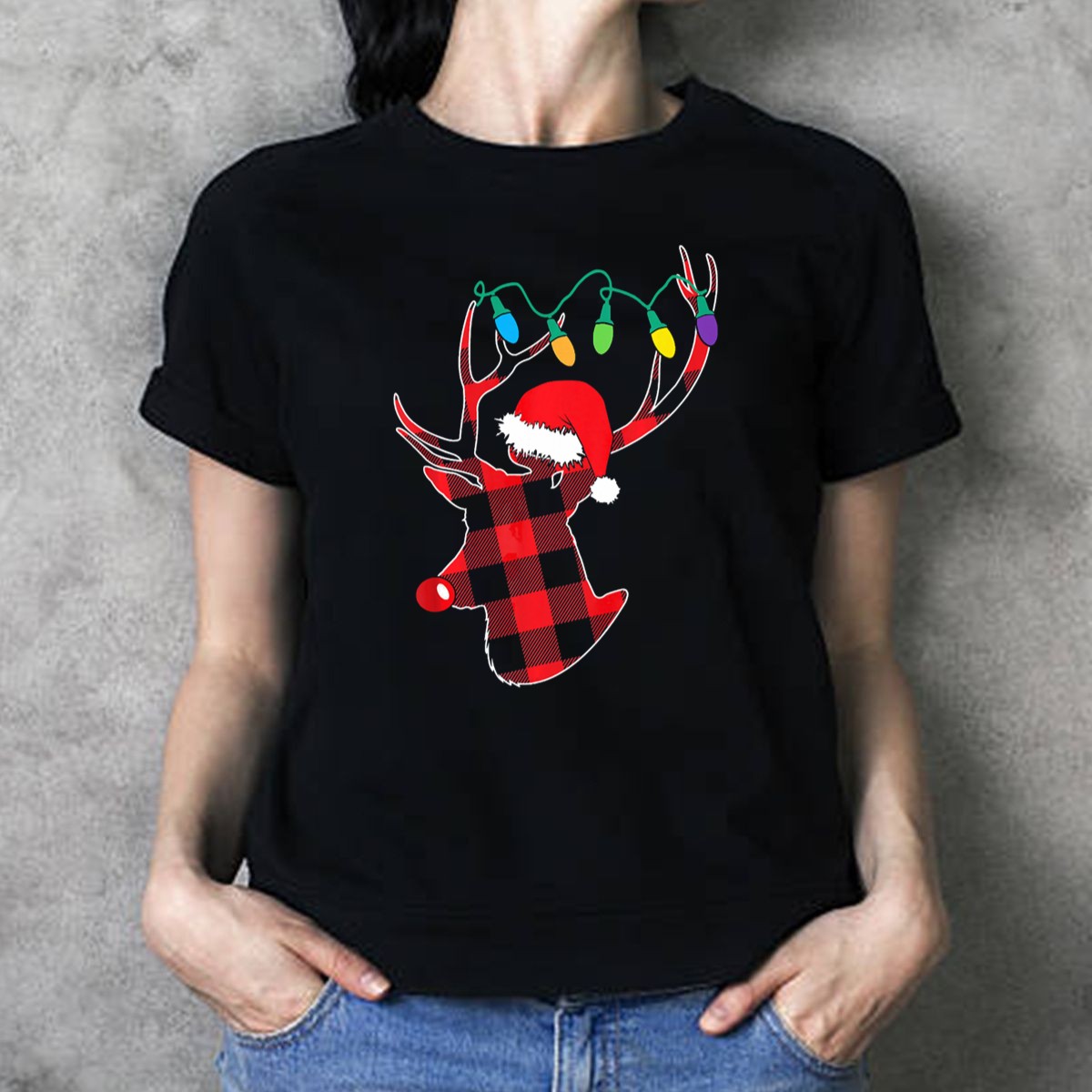 Celebrate the festive season in style with our Christmas Deer Santa Hat Buffalo Plaid String Lights T-Shirt! Perfect for anyone who loves to embrace holiday cheer, this shirt is an ideal choice for casual gatherings, themed events, or just spreading joy in your everyday life. The fan-made design, printed right here in the USA, combines classic Christmas motifs with a trendy plaid pattern, making it a unique addition to your holiday wardrobe.
