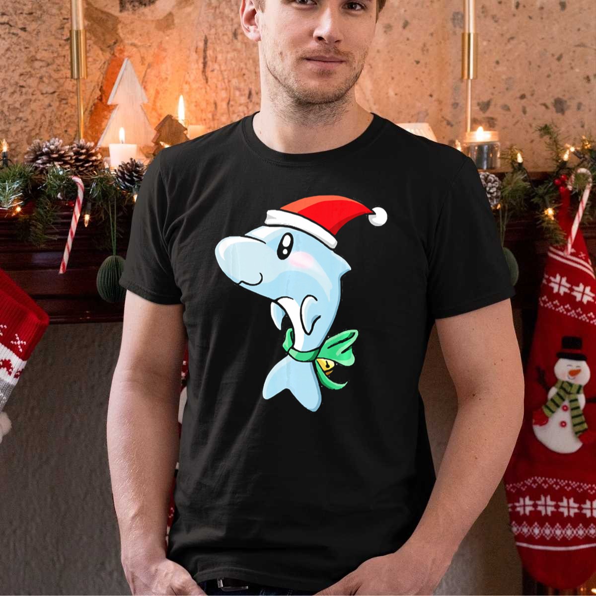 Christmas Dolphin Wearing Santa Hat And Green Scarf With Bell T Shirt 1