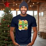 Celebrate the holiday spirit with our Christmas Emoji Faces T-Shirt featuring playful Santa hats and reindeer antlers! This fun and festive design is perfect for those who love to spread cheer during the holiday season. Ideal for casual wear, themed events, or simply brightening up your daily attire, this shirt is a must-have for anyone looking to showcase their festive spirit in style. Made with high-quality materials and printed in the USA, it’s a unique addition to your holiday wardrobe.