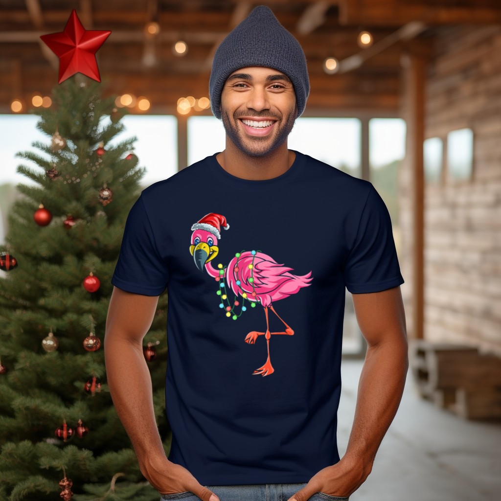 Get into the holiday spirit with our Christmas Flamingo T-Shirt, designed for those who love to spread cheer in a fun and festive way! Perfect for casual outings, themed events, or simply lounging around during the holiday season, this shirt features a whimsical flamingo adorned with a Santa hat and vibrant holiday lights. Made for comfort and style, it’s the ideal addition to your wardrobe for all your winter celebrations and gatherings.