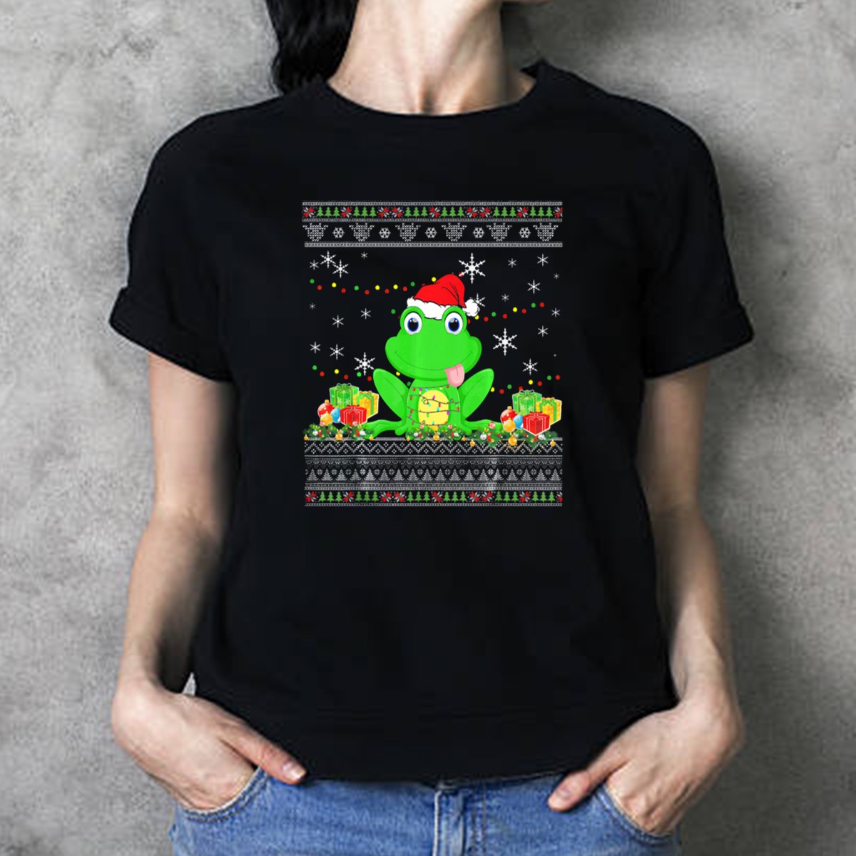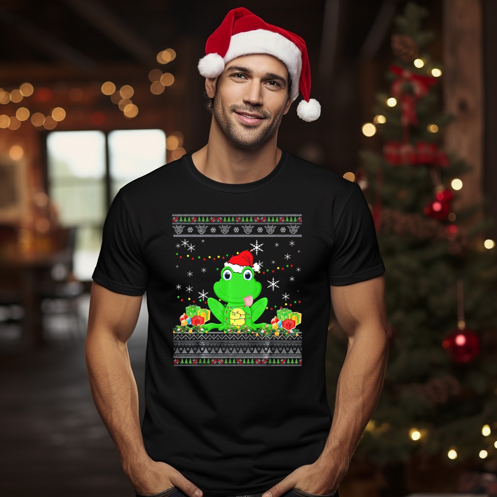 Celebrate the holiday season with our charming Christmas Frog T-Shirt, featuring a delightful design of a frog donning a festive Santa hat surrounded by holiday presents. Perfect for frog lovers and anyone looking to spread some cheer, this shirt is ideal for casual gatherings, themed events, or simply adding a touch of whimsy to your daily wear. Made with love in the USA, it brings a unique flair to your holiday wardrobe.