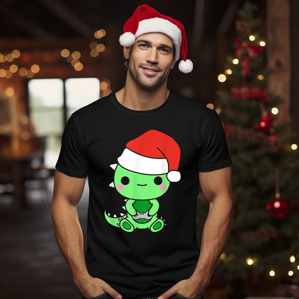 Get ready to level up your holiday wardrobe with our Christmas Gaming Dinosaur Santa Gamer Nerd T-Shirt! Perfect for gamers and dinosaur enthusiasts alike, this fun and festive shirt brings a playful twist to your seasonal celebrations. Ideal for casual outings, themed events, or just lounging at home while you conquer your favorite games, this fan-made design will surely make you the center of attention this holiday season.