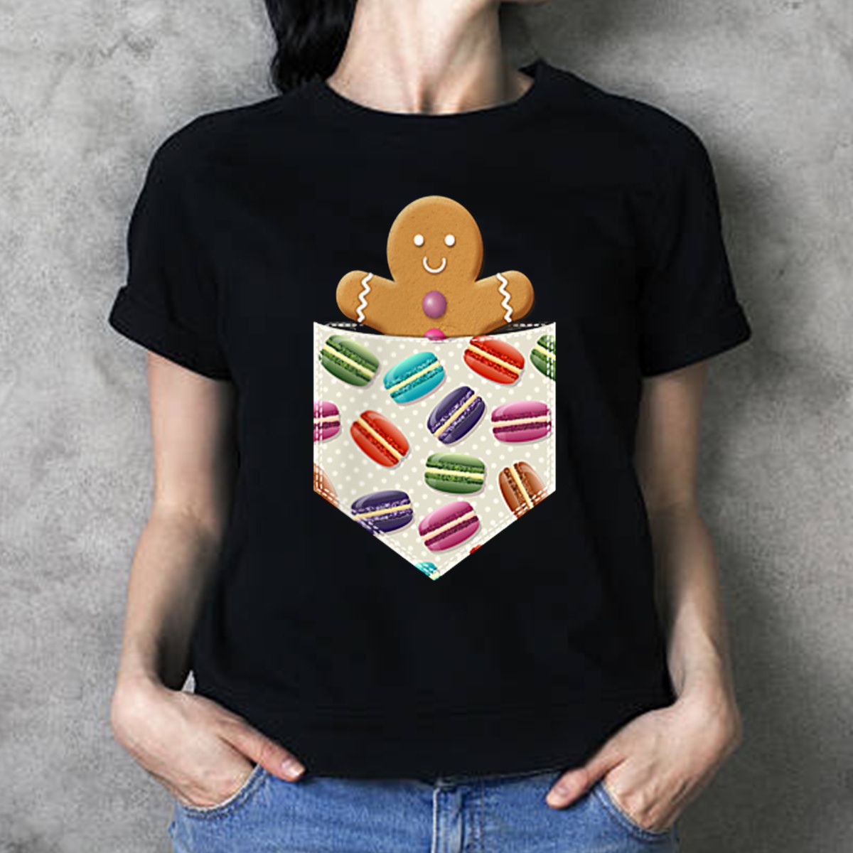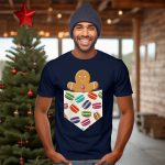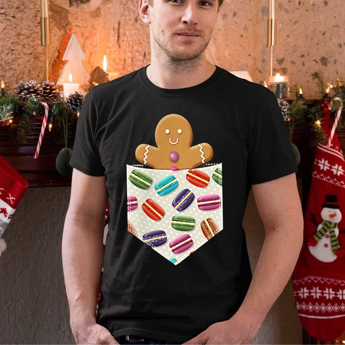 Be the first to review “Christmas Gingerbread Man In Pocket With Colorful Macaroons T-Shirt”