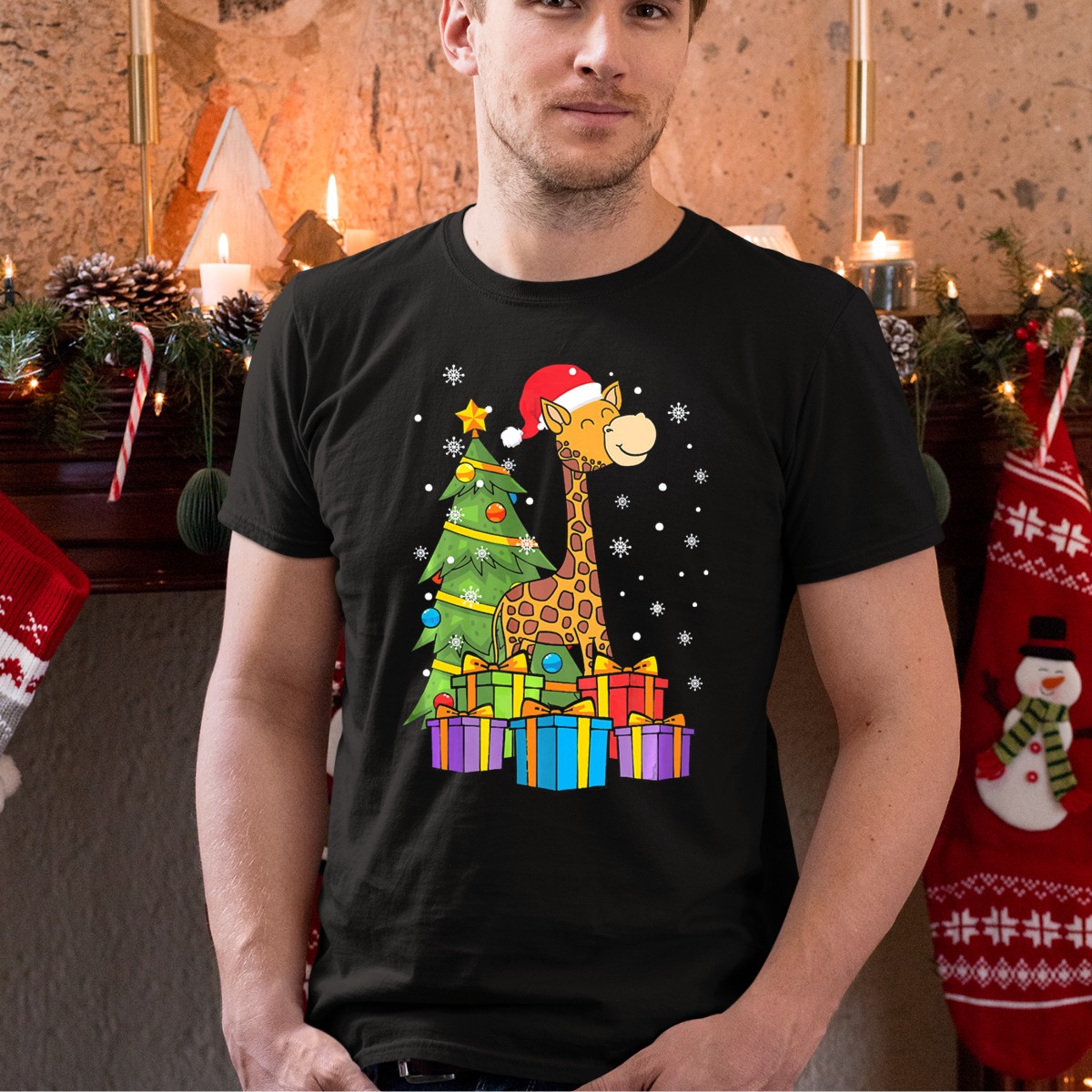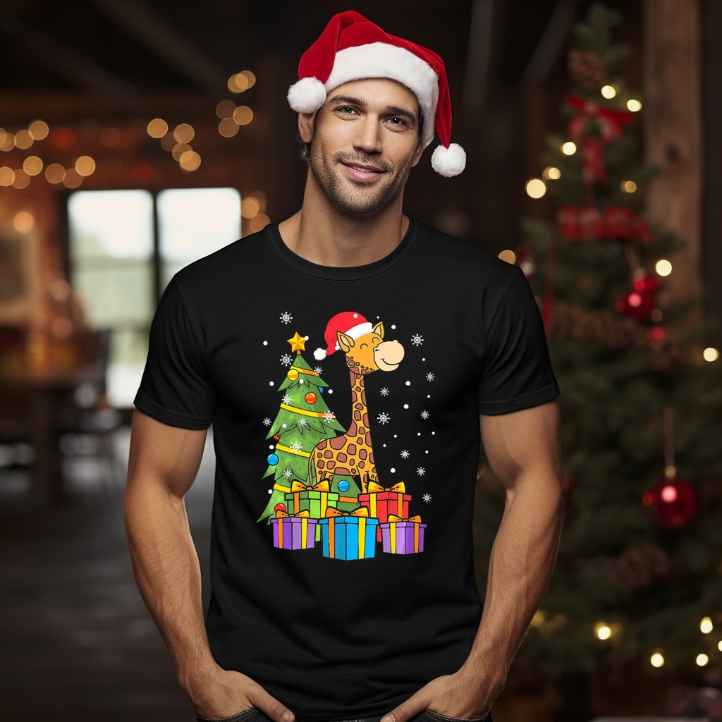 Get ready to spread holiday cheer with our Christmas Giraffe Santa T-Shirt! This festive design features a charming giraffe dressed as Santa, surrounded by twinkling tree lights and colorful presents, making it the perfect choice for animal lovers and holiday enthusiasts alike. Ideal for casual wear, themed events, or simply celebrating the season, this shirt brings a unique touch to your festive wardrobe. Printed right here in the USA, it’s not just a shirt; it’s a celebration of joy and creativity!