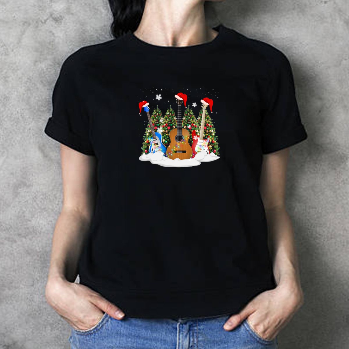 Celebrate the festive season in style with our Christmas Guitar Holiday Festive Trio T-Shirt! Perfect for music lovers and holiday enthusiasts alike, this shirt features a fun and unique design showcasing guitars adorned with Santa hats and Christmas trees. Ideal for casual wear, themed events, or daily outings during the holiday season, this fan-made shirt is printed in the USA, ensuring quality and creativity in every stitch.