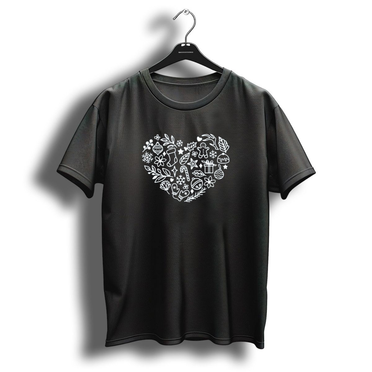 Celebrate the magic of the holiday season with our Christmas Heart Holiday Icons T-Shirt! Perfect for anyone who loves festive cheer, this shirt features delightful designs of snowflakes, gingerbread ornaments, and candy canes, making it an ideal choice for casual wear, themed events, or daily holiday festivities. Crafted for comfort and style, this fan-made design is printed in the USA, ensuring a unique touch for your Christmas celebrations.