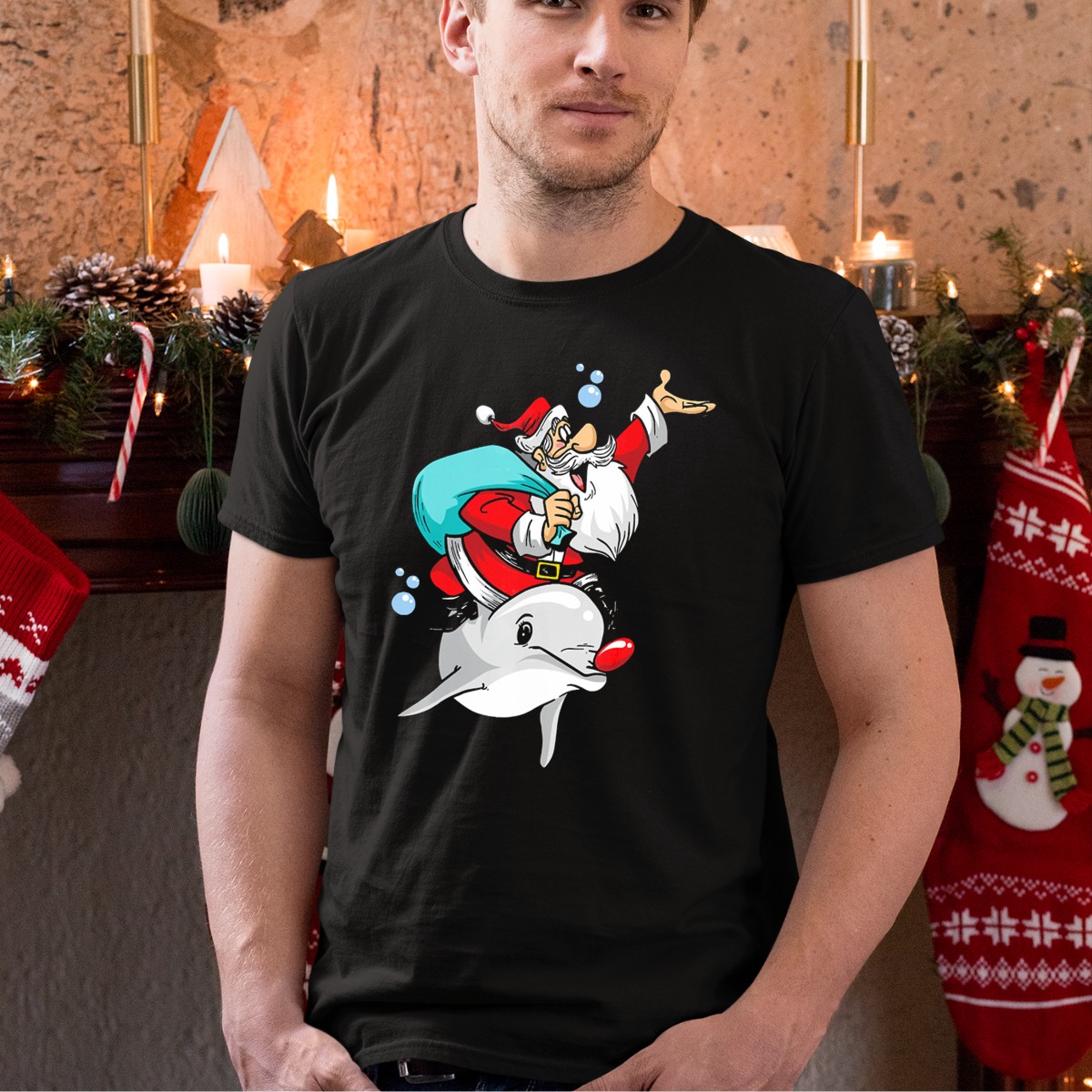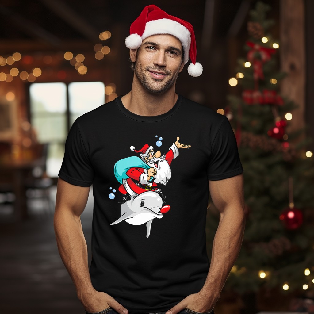 Celebrate the joy of the holiday season even in the middle of summer with our Christmas In July T-Shirt featuring a whimsical design of Santa riding a Rudolph-nosed dolphin! This fan-made graphic tee is perfect for those who love to spread cheer during themed events, casual outings, or just lounging around. Crafted for both comfort and style, it’s a unique addition to your wardrobe that showcases your playful spirit while keeping you cool and comfortable.
