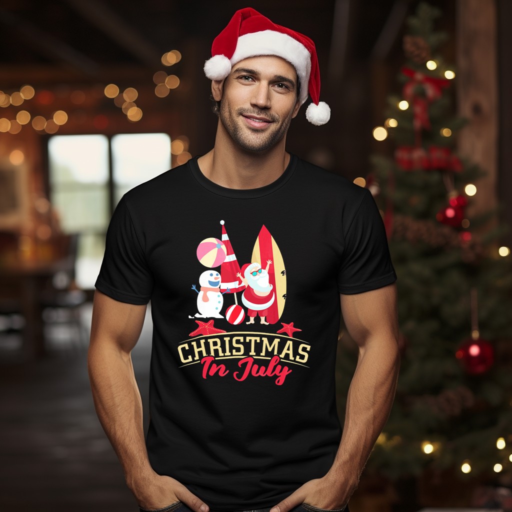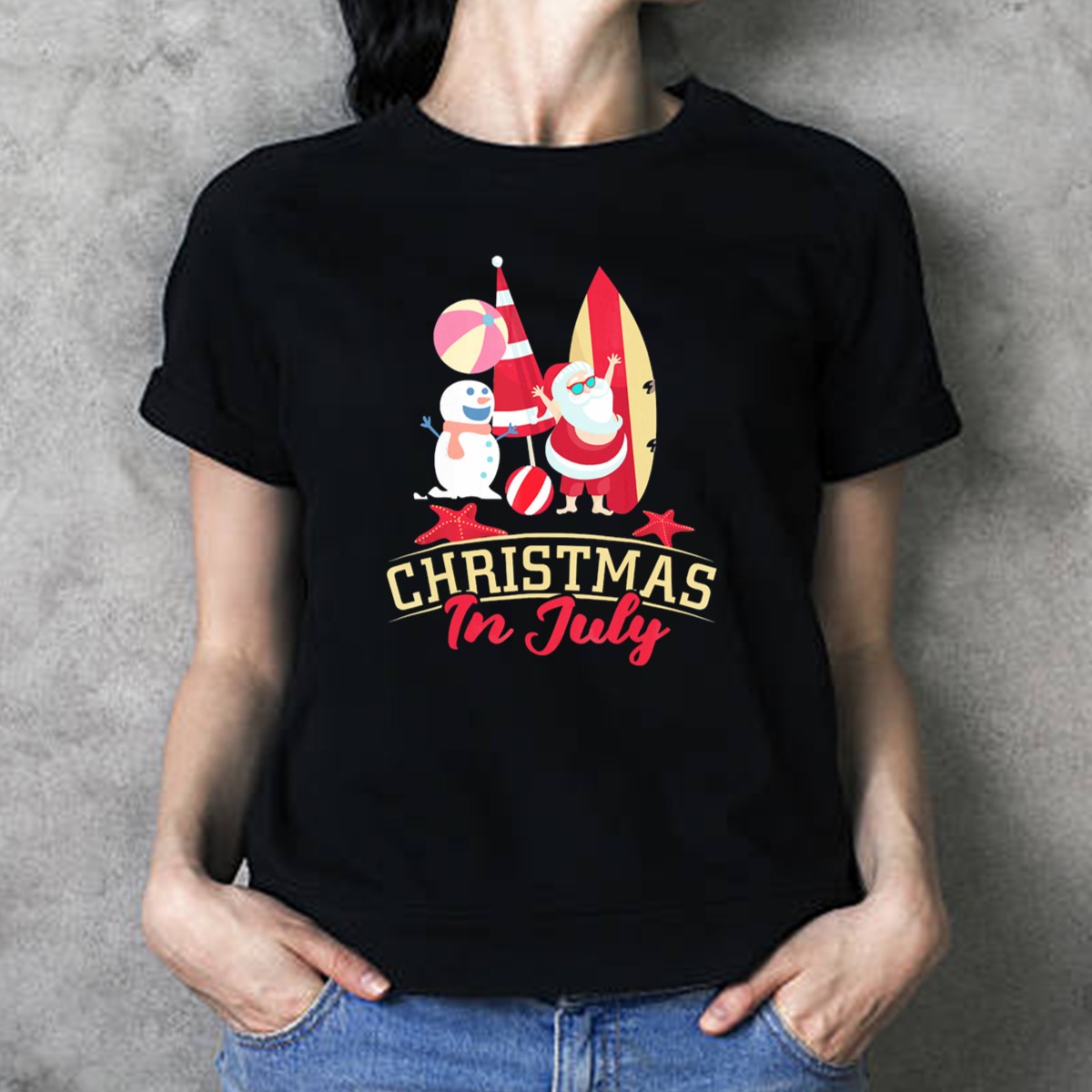 Celebrate the joy of summer and the holiday spirit with our Christmas In July Santa Surfing Snowman Beach Ball T-Shirt! This playful design combines the fun of beach vibes with festive cheer, making it perfect for anyone who loves to showcase their holiday spirit in a unique way. Ideal for casual outings, themed events, or simply lounging around, this shirt is a must-have for those looking to stand out while enjoying the sunny season. Plus, it’s fan-made and printed in the USA, ensuring you wear a piece of art that truly represents your style!