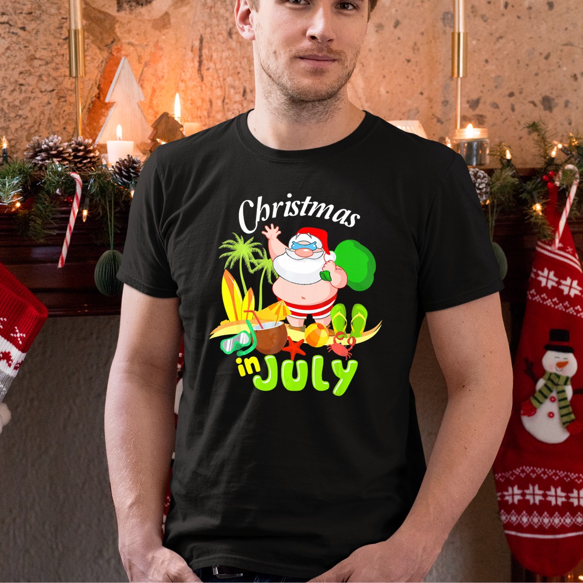 Celebrate the spirit of summer and the joy of the holiday season with our Christmas In July Santa T-Shirt! This fun and festive design features Santa trading in his sleigh for surfboards and tropical drinks, perfect for beach lovers and holiday enthusiasts alike. Ideal for casual wear, themed events, or simply lounging on sunny days, this shirt is a unique way to show off your love for both Christmas and summer vibes. Made in the USA, it’s a must-have for anyone looking to bring a little cheer to their summer wardrobe.
