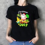 Be the first to review “Christmas In July Santa With Surfboards Palm Trees Tropical Drinks T-Shirt”