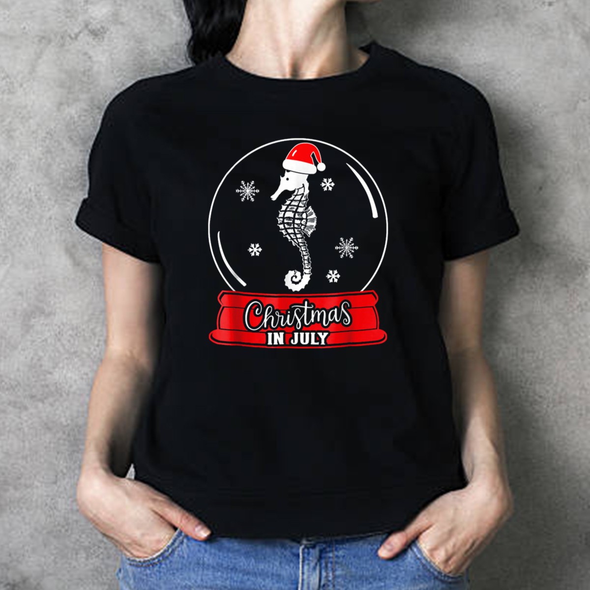 Embrace the festive spirit all year round with our Christmas In July Snowglobe Seahorse Santa T-Shirt! Perfect for holiday enthusiasts and ocean lovers alike, this fan-made design features a whimsical seahorse Santa encased in a charming snowglobe, making it a delightful addition to your casual wardrobe. Whether you’re celebrating a themed event, lounging at home, or out with friends, this unique shirt brings a touch of holiday cheer to any occasion.