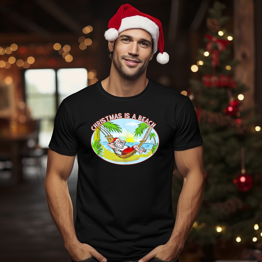 Celebrate the holiday season with a twist in our “Christmas Is A Beach” Santa T-Shirt! Perfect for beach lovers and holiday enthusiasts alike, this fan-made design brings a fun and festive vibe to your casual wear. Whether you’re lounging by the ocean or attending a themed event, this shirt is sure to make a statement and spread holiday cheer wherever you go!