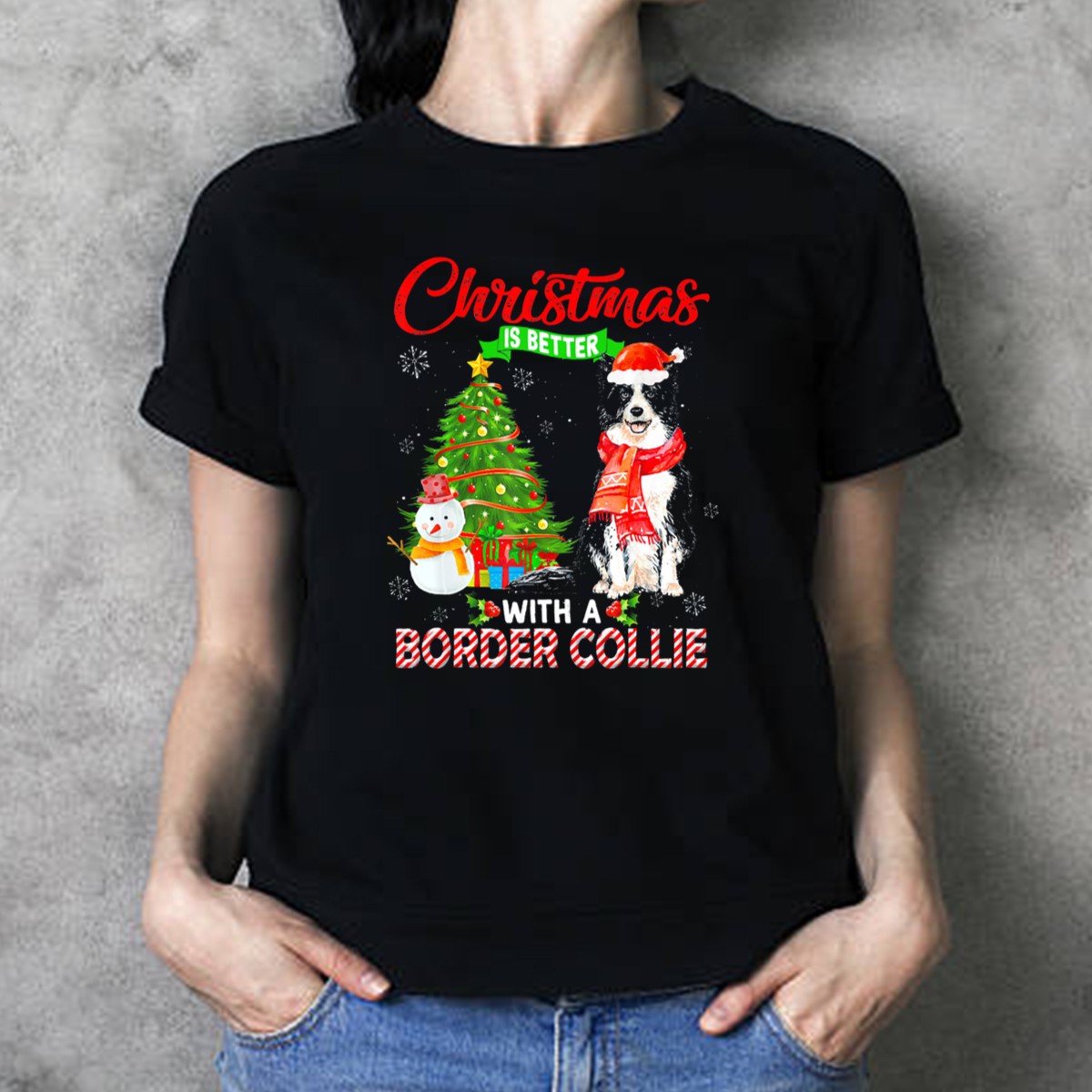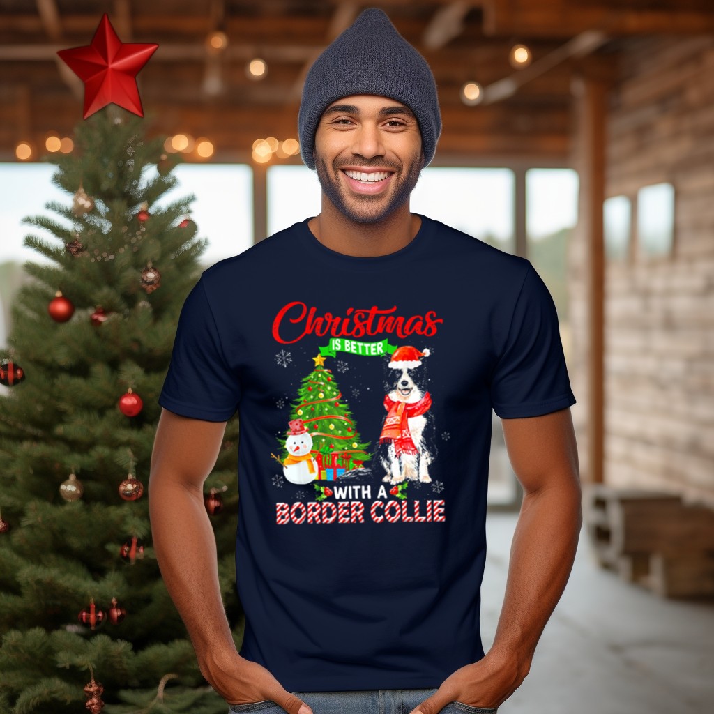 Celebrate the joy of the holidays with our “Christmas Is Better With A Border Collie” T-shirt! Perfect for dog lovers and festive spirits alike, this graphic tee features an adorable design of a Border Collie surrounded by a festive tree, snowman, and Santa hat, making it an ideal choice for casual wear during Christmas gatherings, themed events, or just daily festivities. Crafted for comfort and style, this shirt is sure to bring a smile to your face and warmth to your heart.