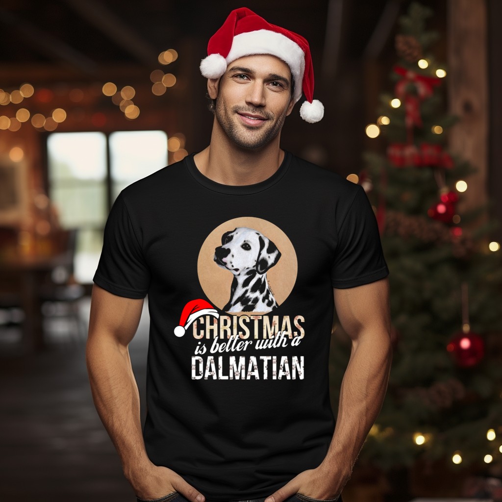 Celebrate the festive season in style with our “Christmas Is Better With A Dalmatian Santa Hat” T-shirt! Perfect for dog lovers and those who appreciate a touch of whimsy, this fan-made design brings joy and cheer to your holiday gatherings. Whether you’re attending a themed event, enjoying a casual day out, or simply spreading holiday cheer at home, this shirt is a delightful addition to your wardrobe. Printed in the USA, it’s not just a T-shirt; it’s a festive statement!