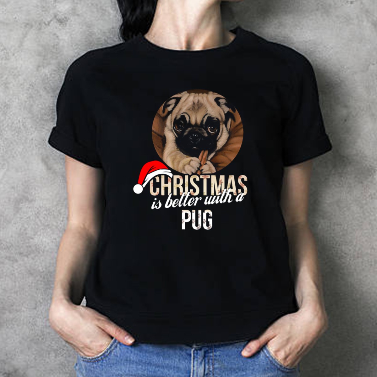 Celebrate the holiday season with our festive “Christmas Is Better With A Pug Wearing Santa Hat” T-shirt! This charming design is perfect for pug lovers and pet enthusiasts alike, making it an ideal choice for casual gatherings, themed events, or just spreading cheer during daily wear. Crafted with love and printed in the USA, this shirt brings a unique touch to your holiday wardrobe.