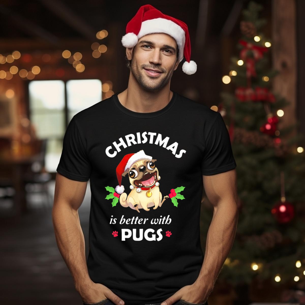 Celebrate the festive season with our “Christmas Is Better With Pugs” T-shirt, featuring an adorable design that combines the joy of Christmas with the love for pugs! Perfect for dog lovers and anyone who wants to spread holiday cheer, this shirt is ideal for casual gatherings, themed events, or just cozying up at home. Made in the USA, this fan-made design showcases your passion for pugs while keeping you stylish and comfortable throughout the season.
