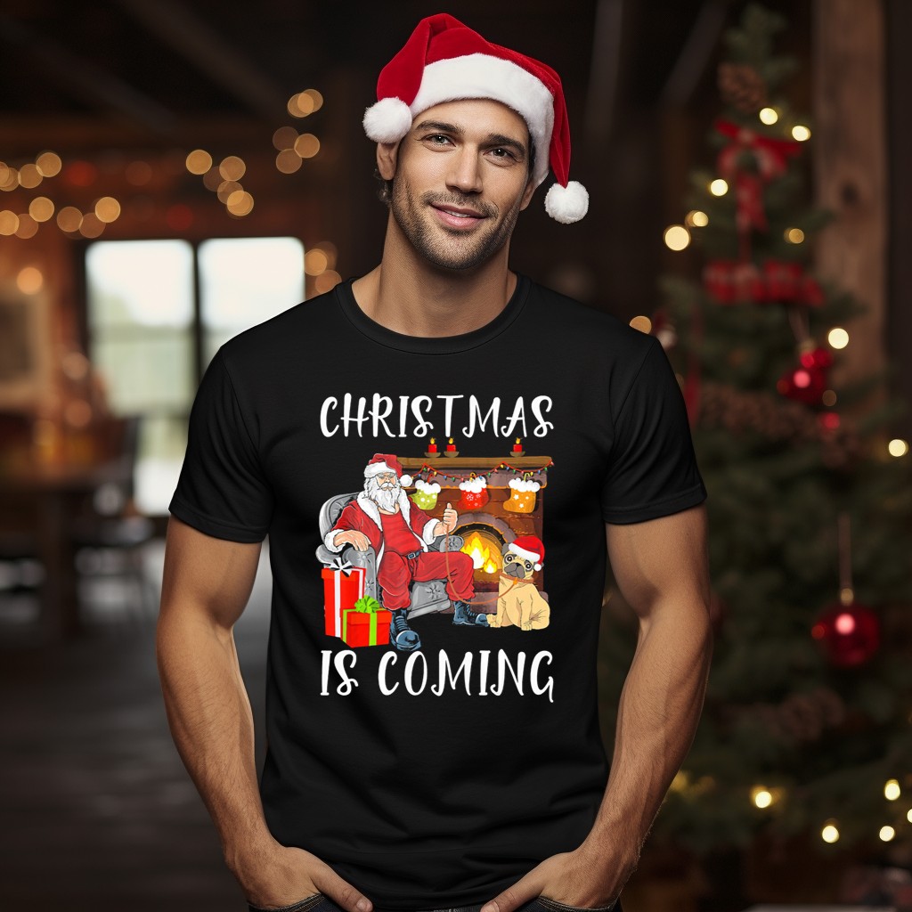 Celebrate the holiday spirit with our “Christmas Is Coming” Santa Claus T-shirt, featuring a heartwarming design of Santa by the fireplace with a dog and gifts. Perfect for anyone looking to spread festive cheer, this shirt is ideal for casual gatherings, themed events, or simply lounging at home during the holiday season. Made with love and printed in the USA, this fan-made design will make you stand out as you embrace the joy of Christmas.