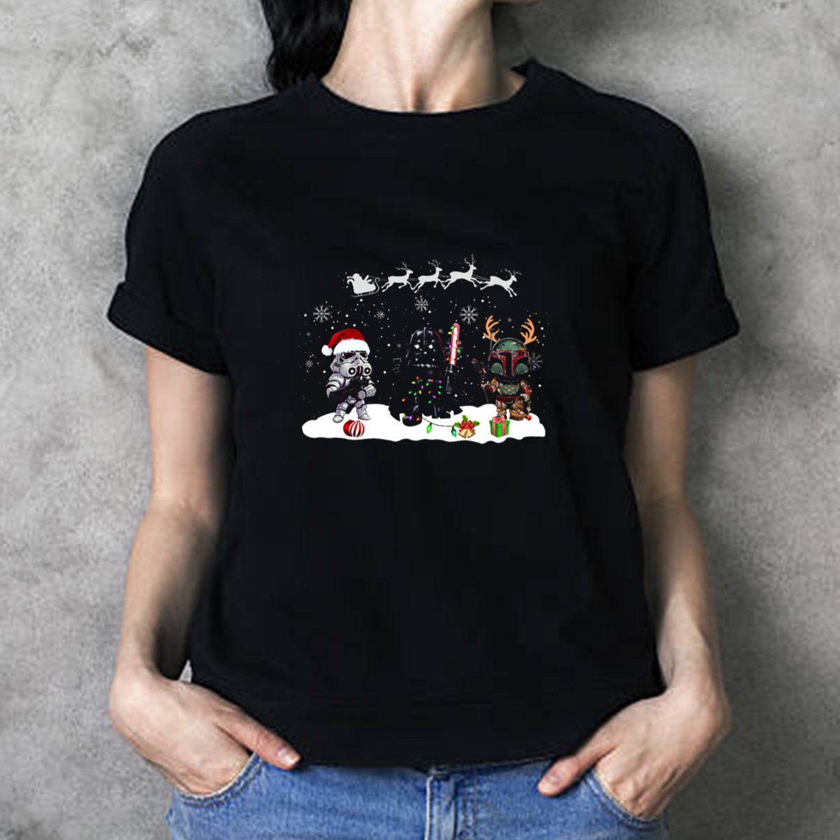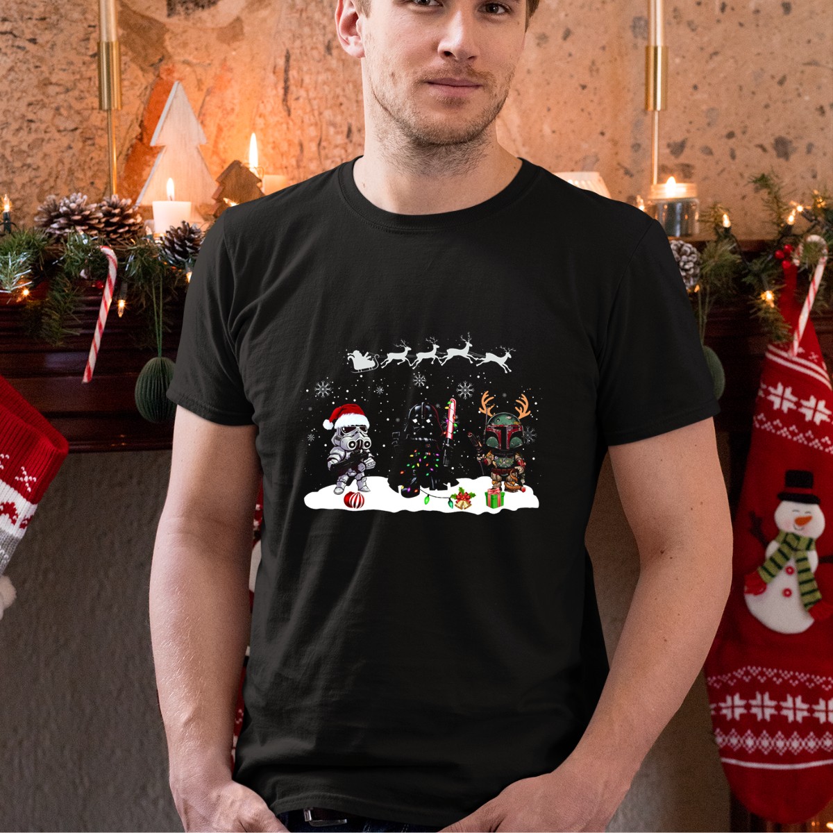 Get ready to celebrate the holiday season with our fan-made “Christmas Is Coming” Star Wars Characters Santa Vader Bounty Hunter Snow Holiday T-Shirt! Perfect for Star Wars enthusiasts, this shirt brings together the excitement of the beloved franchise and the festive spirit of Christmas. Whether you’re dressing up for a themed event, cozying up for movie marathons, or just enjoying daily wear, this classic fit tee is a delightful addition to your wardrobe. Made and printed in the USA, it showcases unique artistry that resonates with both casual fans and hardcore collectors alike.