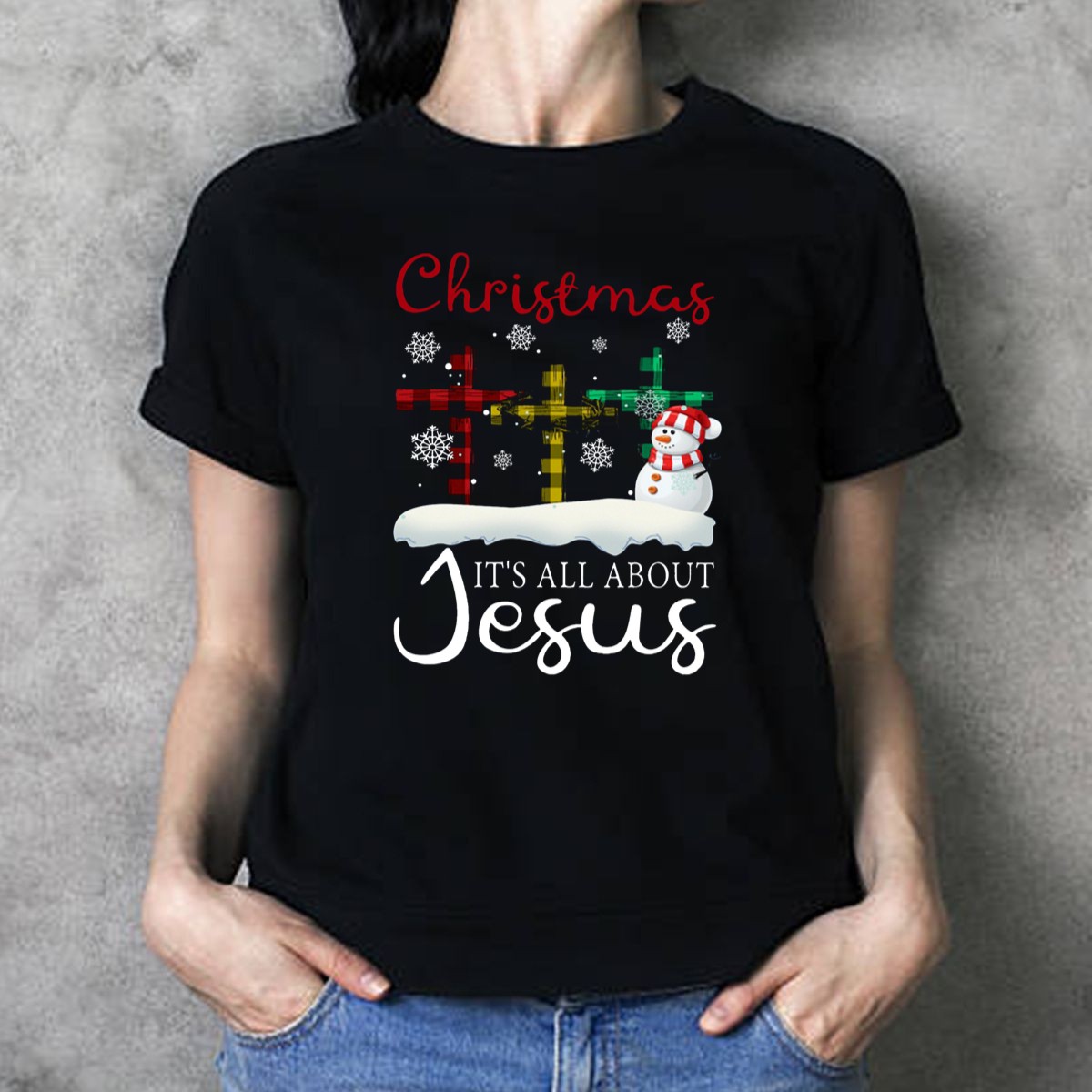 Celebrate the true spirit of Christmas with our “It’s All About Jesus” T-shirt featuring a charming design of crosses and a snowman. This fan-made graphic tee is perfect for anyone looking to express their faith and holiday cheer. Ideal for casual wear, themed events, or daily outings during the festive season, this shirt combines comfort with a heartfelt message, making it a unique addition to your holiday wardrobe.