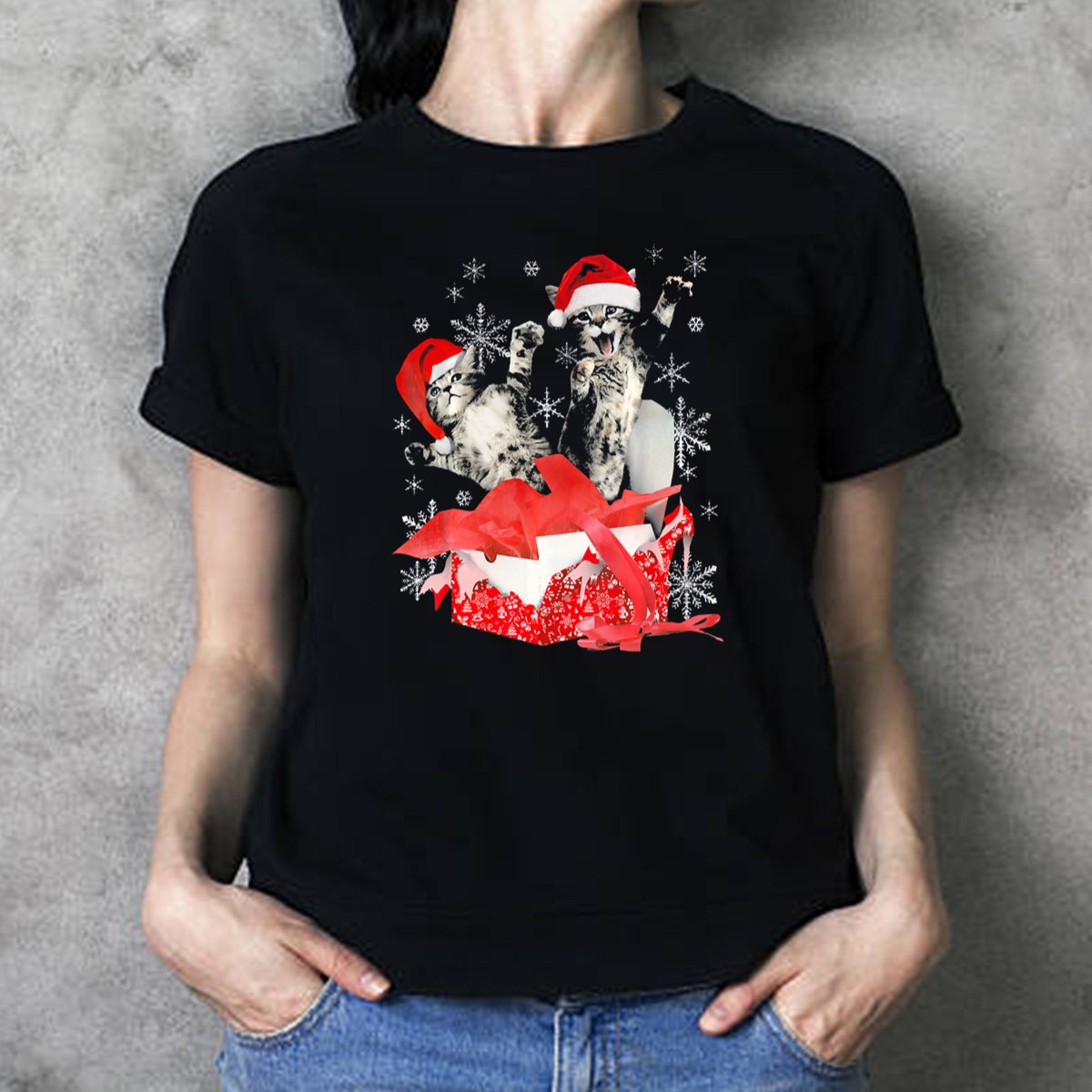 Spread holiday cheer with our Christmas Kitten Santa Hat Present T-Shirt! This adorable graphic tee features a playful kitten adorned with a festive Santa hat, surrounded by charming snowflakes. Perfect for cat lovers and anyone looking to add a touch of whimsy to their holiday wardrobe, this shirt is ideal for casual gatherings, themed events, or simply lounging around during the festive season. Made with a fan-made design and printed in the USA, this tee is a unique addition to your all-season collection.