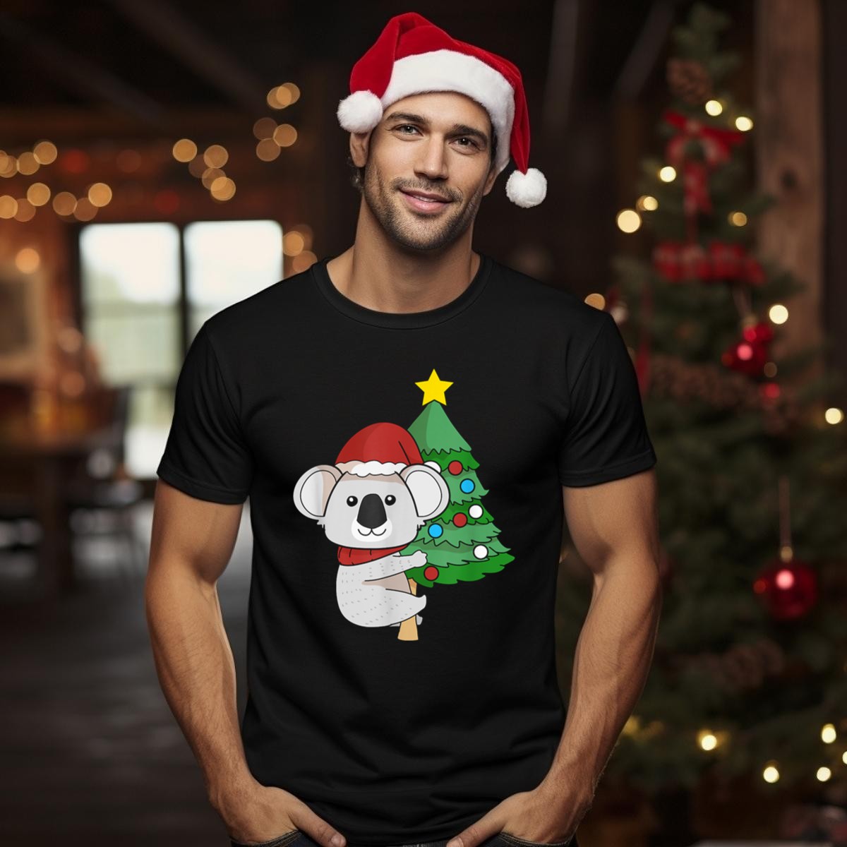 Celebrate the holiday season with our charming Christmas Koala Bear T-Shirt! Perfect for animal lovers and festive enthusiasts alike, this delightful tee features an adorable koala adorned with a Santa hat, surrounded by a beautifully decorated Christmas tree. Ideal for casual wear, themed events, or simply spreading holiday cheer, this unique fan-made design is printed in the USA, ensuring you stand out during all your festive gatherings.