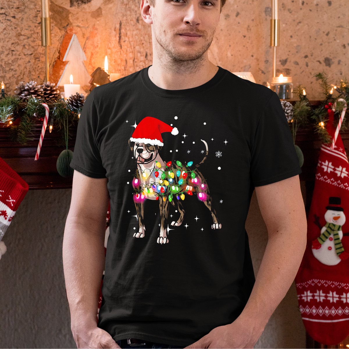Celebrate the festive spirit with our Christmas Lights American Bulldog Santa Hat Snowflakes T-Shirt! This playful design features an adorable American Bulldog wearing a Santa hat, surrounded by charming snowflakes, making it perfect for dog lovers and holiday enthusiasts alike. Whether you’re attending a casual holiday gathering, themed events, or simply enjoying daily wear during the season, this shirt combines comfort with a touch of whimsy. Proudly printed in the USA, it’s a unique addition to your holiday wardrobe that showcases your love for both dogs and the joys of Christmas!