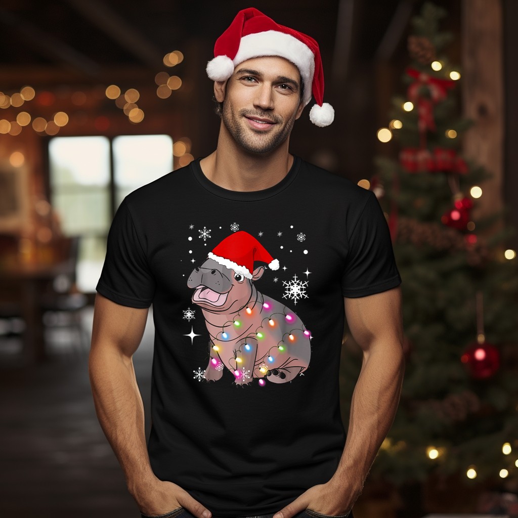 Celebrate the festive season with our Christmas Lights Baby Hippo Fiona Santa Hat T-Shirt! Perfect for animal lovers and holiday enthusiasts alike, this charming design adds a playful touch to your casual wardrobe. Whether you’re attending a themed event, enjoying a cozy family gathering, or simply spreading holiday cheer, this shirt is a delightful choice that showcases your fun-loving spirit. Made with care in the USA, it’s a unique fan-made design that will surely turn heads and spread smiles.