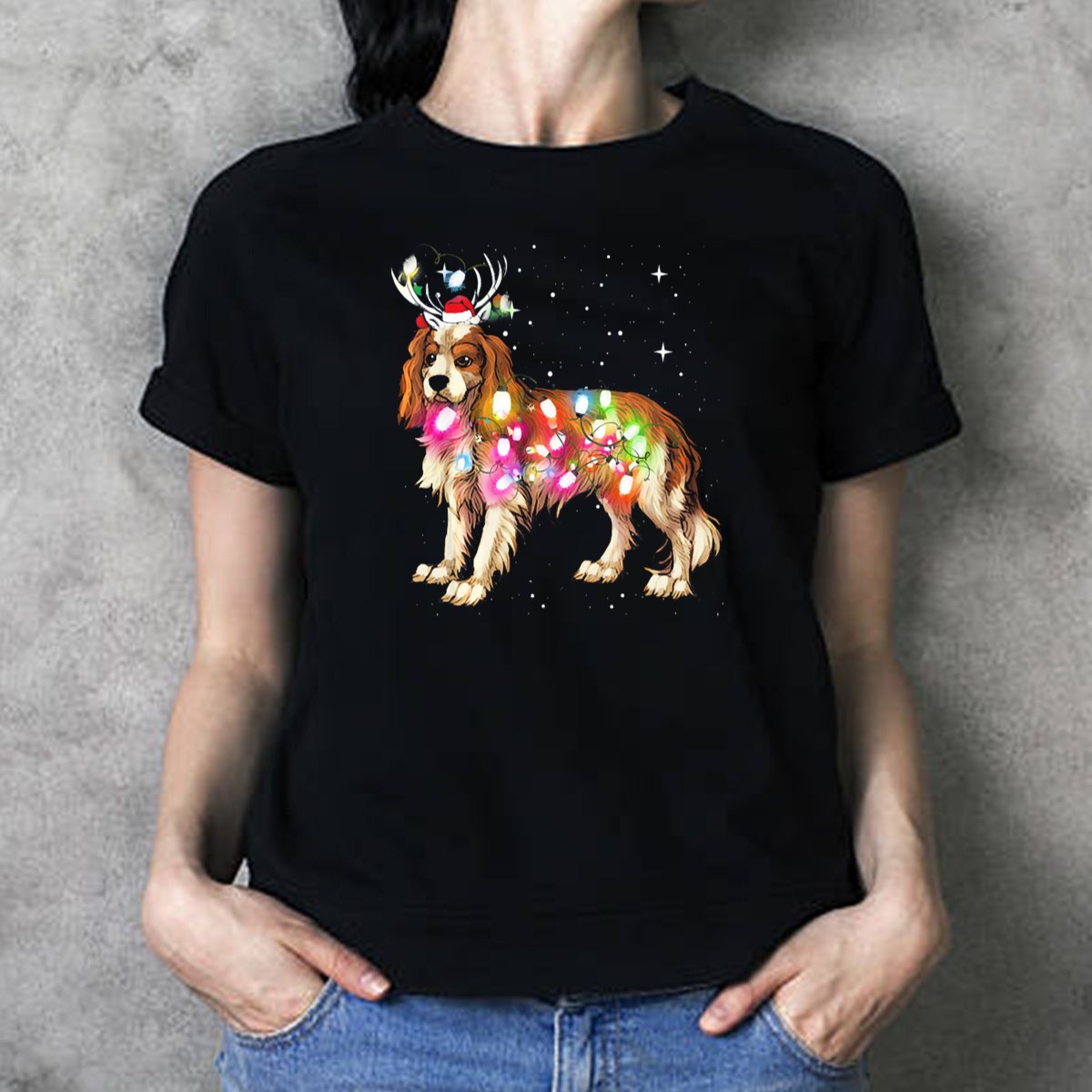 Celebrate the joy of the holiday season with our Christmas Lights Cavalier King Charles Reindeer Antlers Santa Hat T-Shirt! Perfect for dog lovers and festive gatherings, this tee combines a playful design with a classic fit, making it an ideal choice for casual wear, themed events, or just spreading cheer during daily outings. The fan-made graphic, proudly printed in the USA, showcases your love for the Cavalier King Charles breed while adding a delightful holiday twist to your wardrobe.